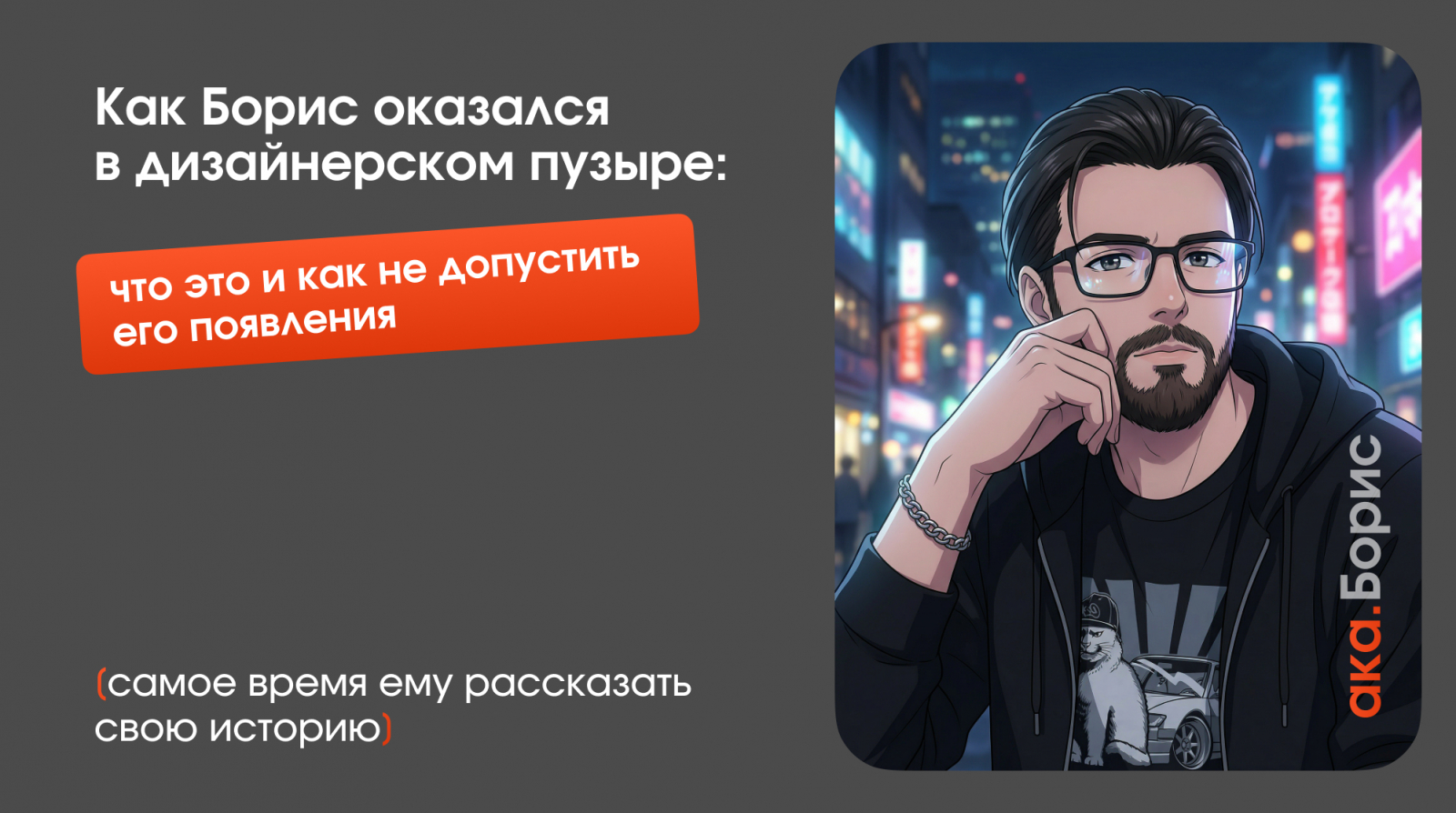 В определенный виток своей жизни Борис решает стать айтишником. Писать код на коленках он, конечно же, не хочет, ему ближе художественное направление. Благо это происходит во времена популярности онлайн-школ, которые дают возможность переквалифицироваться из простого работяги в дизайн-машину. И, воспользовавшись такой удачей, Борис становится начинающим дизайнером с определенной базой за плечами, но без должного опыта.