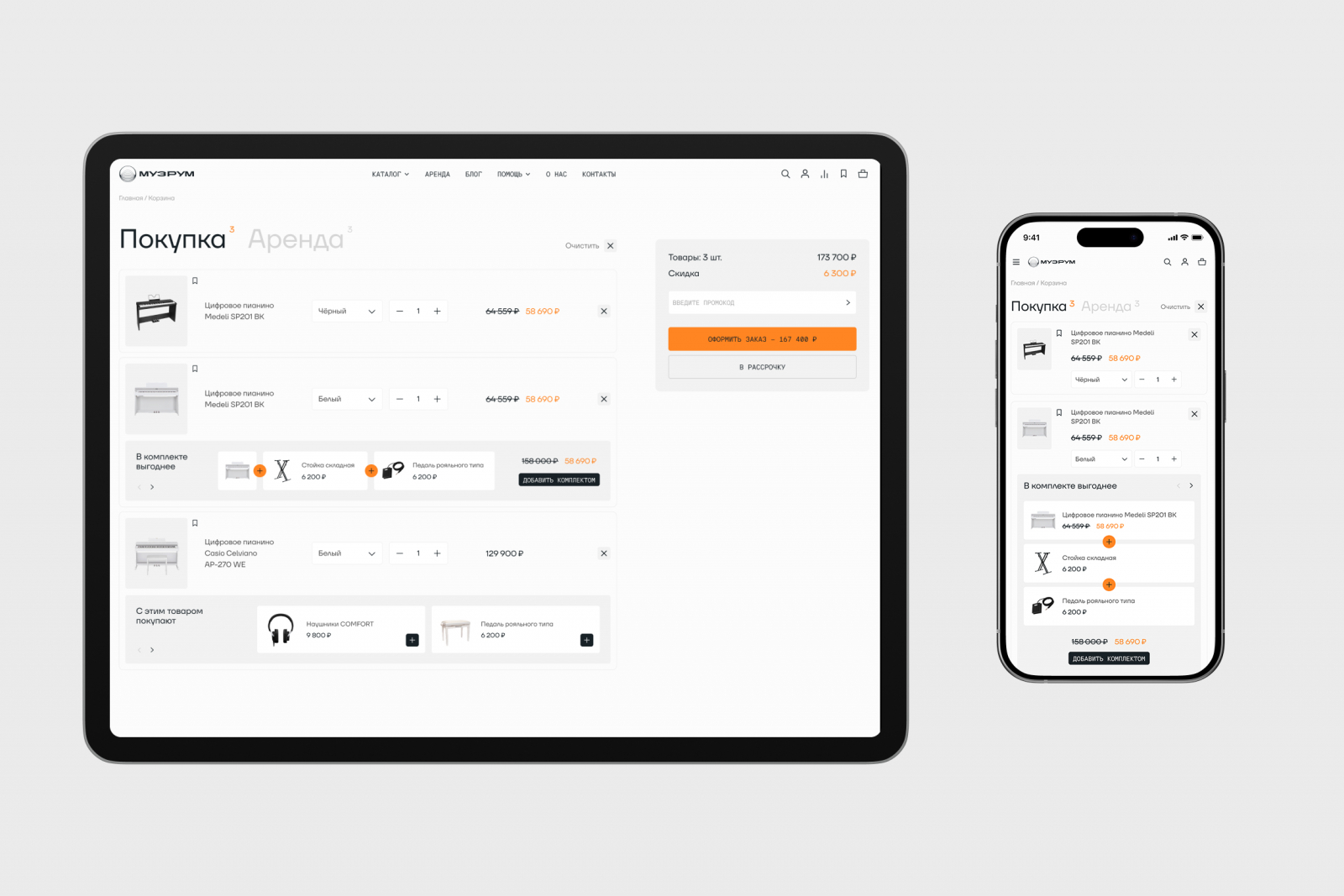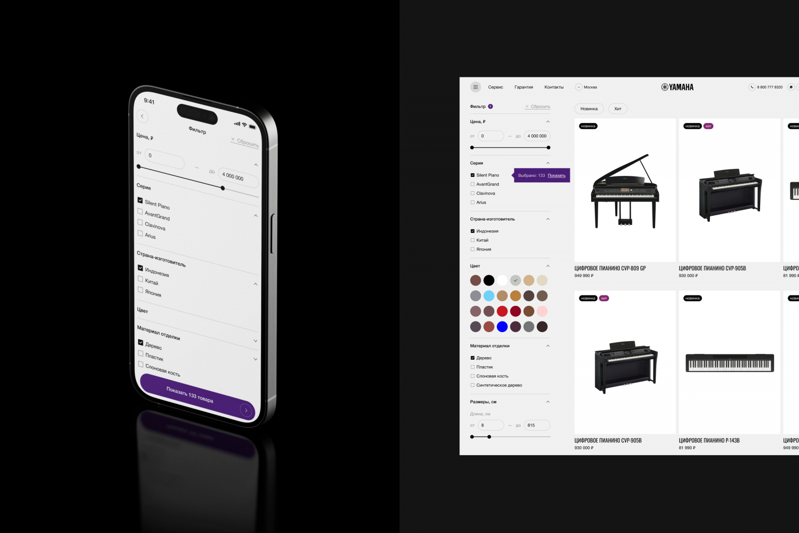 Сейчас мы завершаем ещё один проект – Музрум, магазин цифровых пианино. Там мы также применяем принципы эмоционального e-commerce: от выразительного визуального языка до удобных сценариев выбора, чтобы пользователь мог буквально услышать и почувствовать инструмент ещё до покупки.