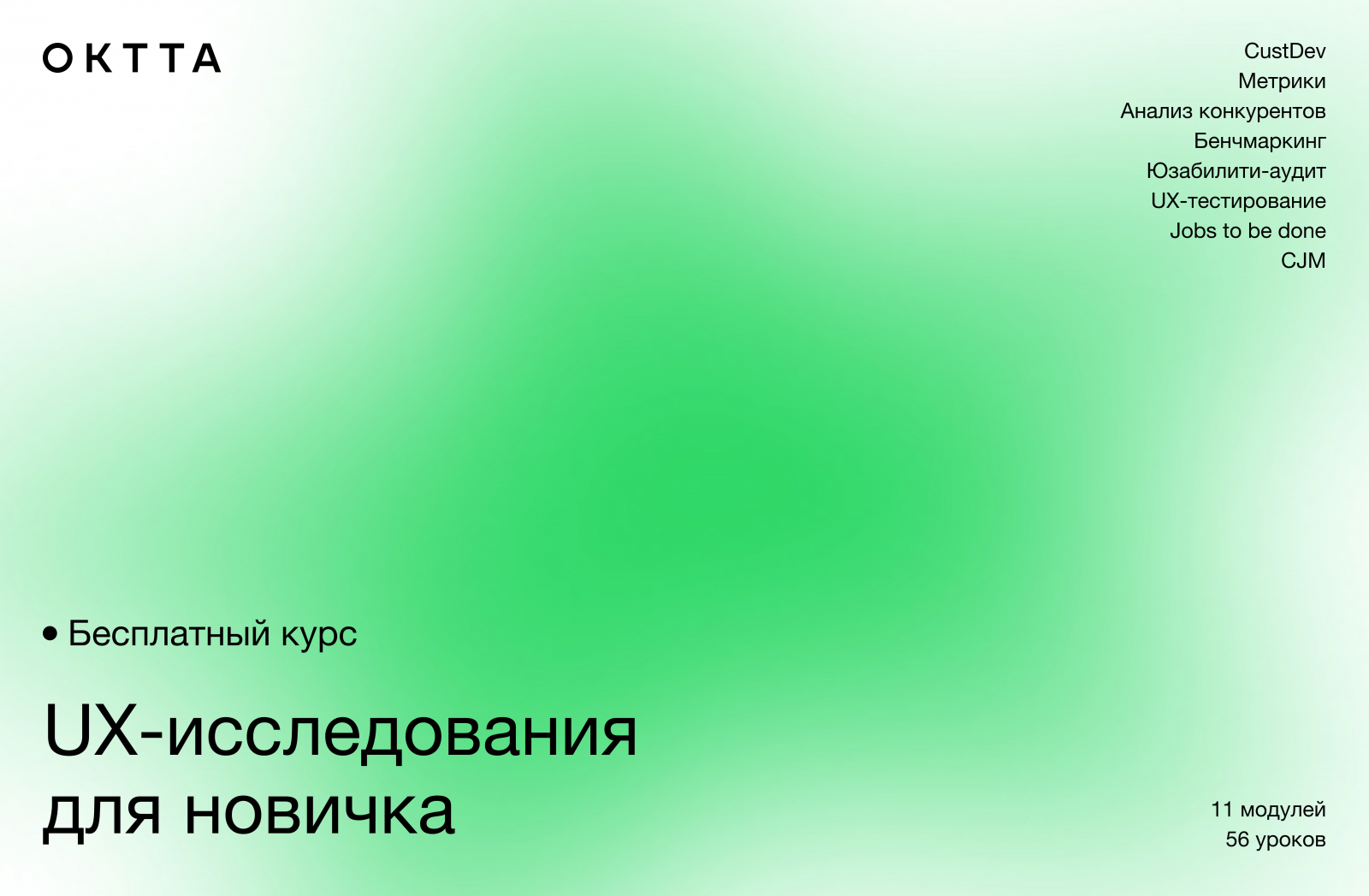 Материалов по теме много, но большинство из них либо просто небольшие обзорные статьи, либо сразу глубокое погружение без базы. За годы работы в OKTTA мы накопили большой практический опыт в UX-исследованиях и в какой-то момент поняли, что хотим делиться им с индустрией. UX-исследования для нас – это фундамент любой продуктовой работы: именно они помогают понять, как пользователи принимают решения, где в интерфейсе возникают проблемы и какие изменения реально влияют на поведение людей. Этот опыт мы собрали в бесплатный курс-базу знаний для начинающих специалистов, чтобы можно было быстро войти в контекст и разобраться, как всё устроено.