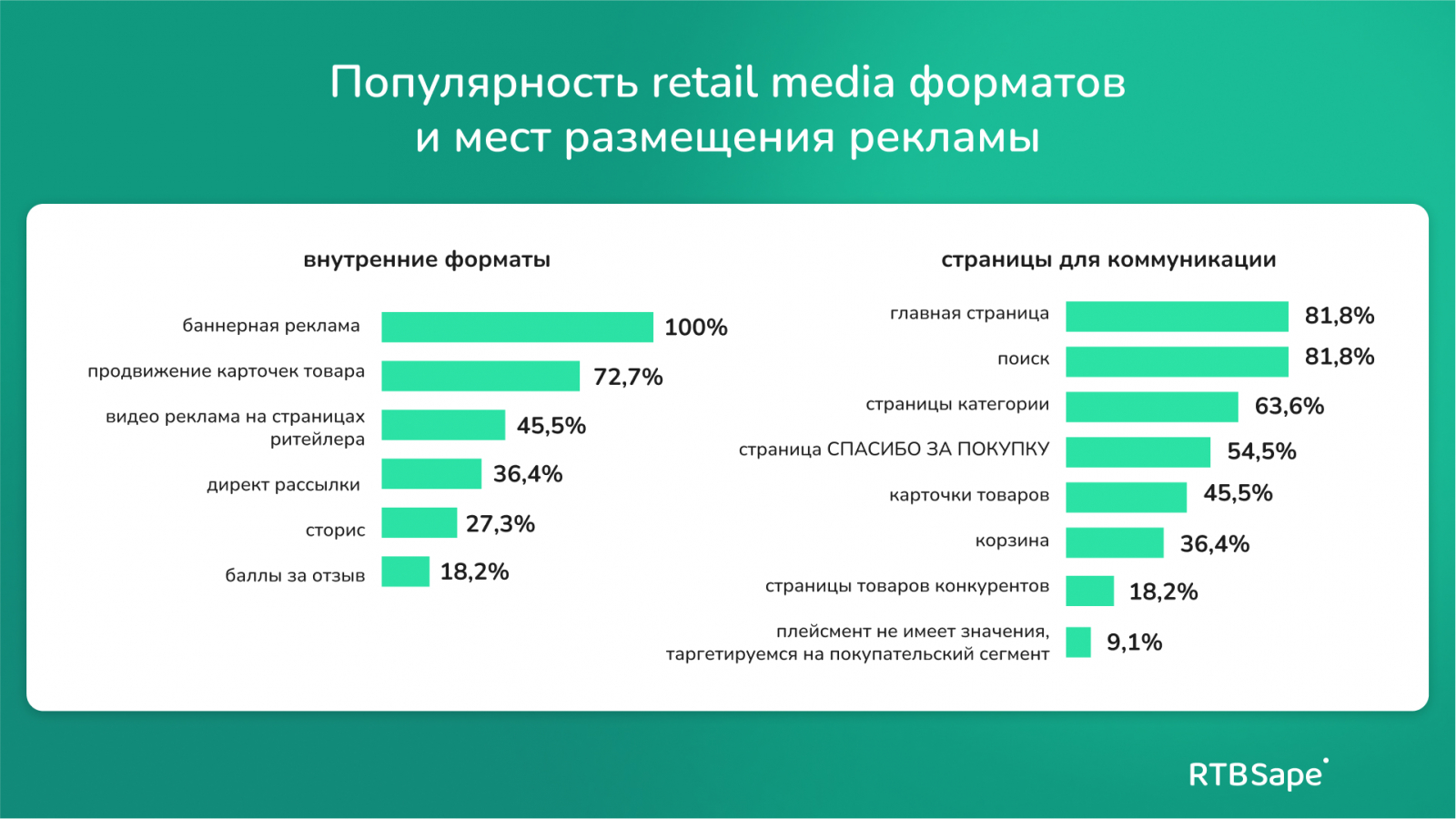 Наблюдается тренд на превращение ретейлеров в медиаплатформы: они продают рекламные места внутри своих экосистем, используя данные о покупателях. Это влечет за собой появление новых рекламных форматов в e-com, рост инвестиции в RMN вместо соцсетей, интеграцию ИИ-персонализации в рекламу.