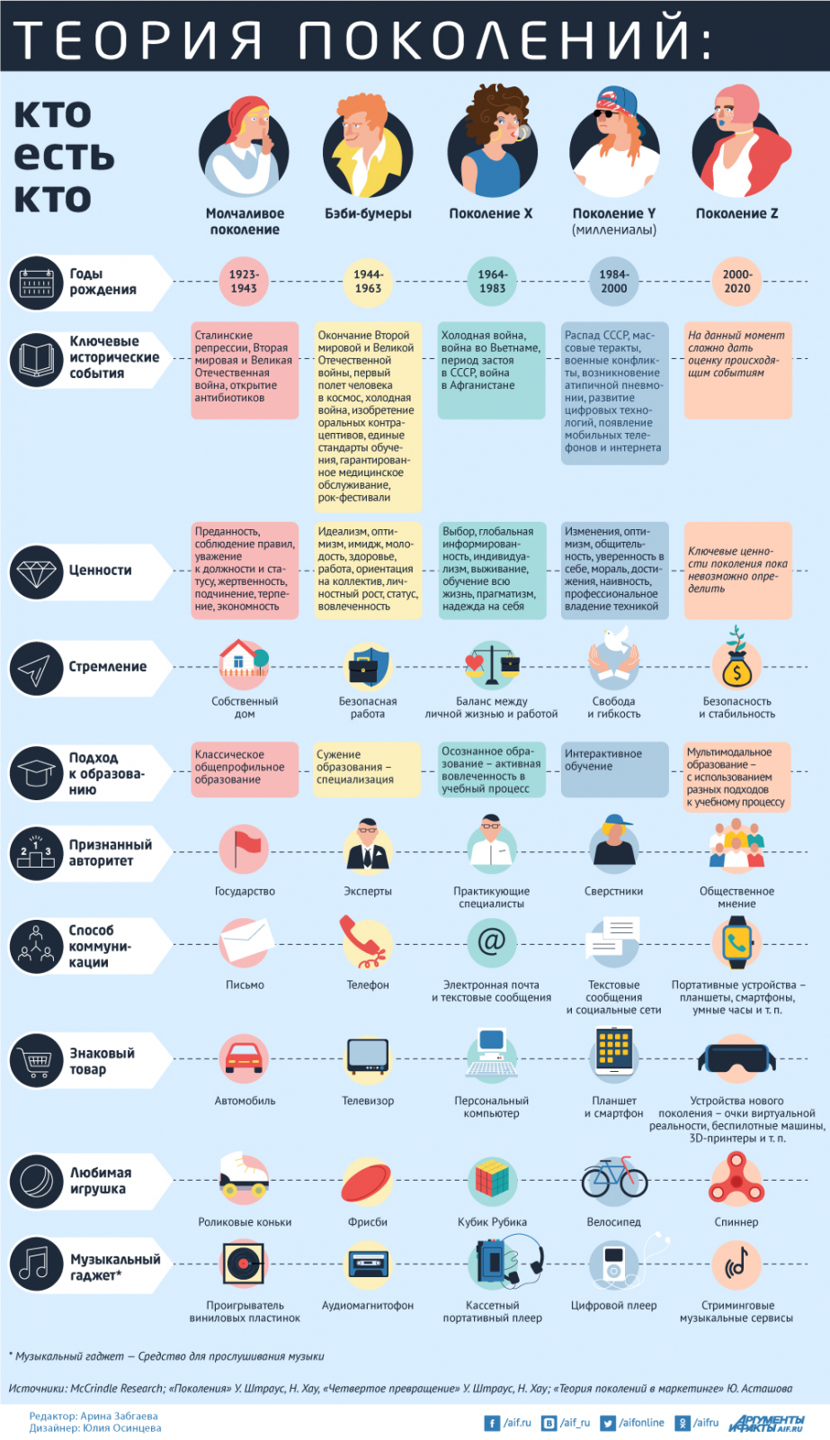 Согласно теории поколений, каждая возрастная группа имеет собственные ценности, привычки, ожидания от общения и способов диалога. При этом ключевую роль играют не только годы рождения, но и общий культурный и исторический контекст взросления.