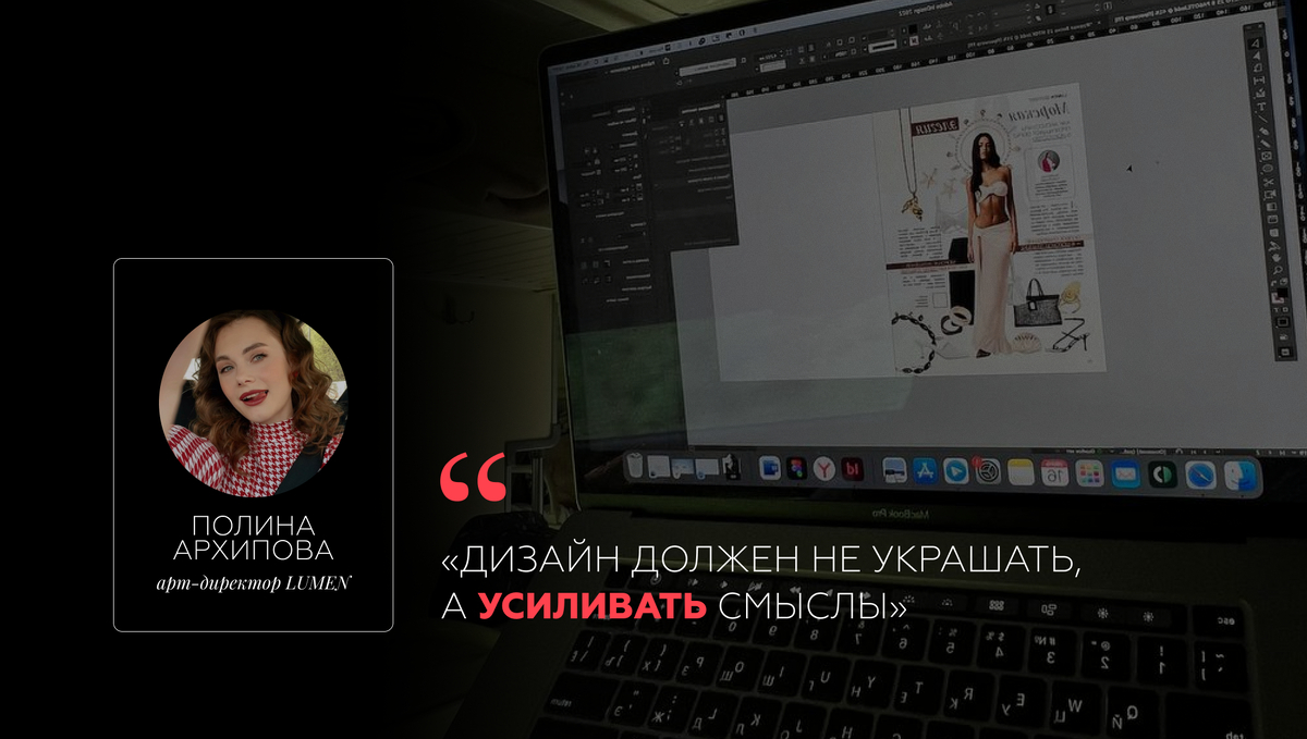 Полина Архипова — арт-директор LUMEN и создательница его визуальной ДНК. В руках Полины каждый макет, шрифт и цветовая палитра превращаются в осмысленный визуальный рассказ. Она не просто оформляет контент — она вдыхает в него характер и делает каждую страницу журнала узнаваемой с первого взгляда.