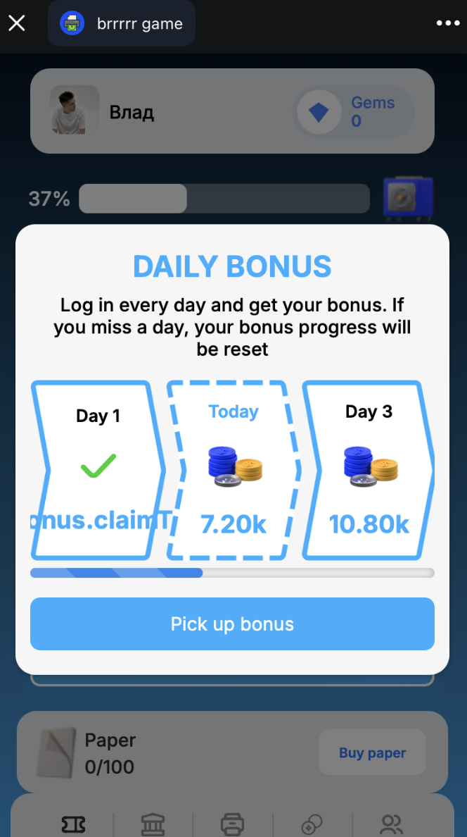 Хотите посмотреть проект вживую? Вот тест: @brrrrrgamebot