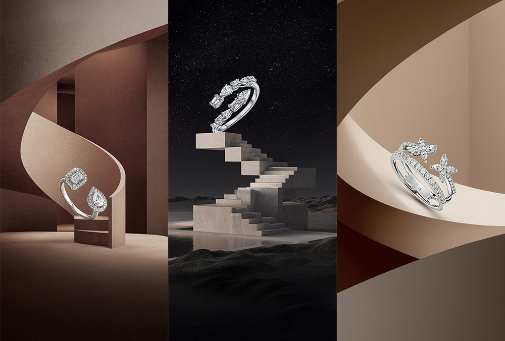 Коллекция построена на принципе архитектурной паузы — момента, когда линия намеренно прерывается, чтобы раскрыть камень.