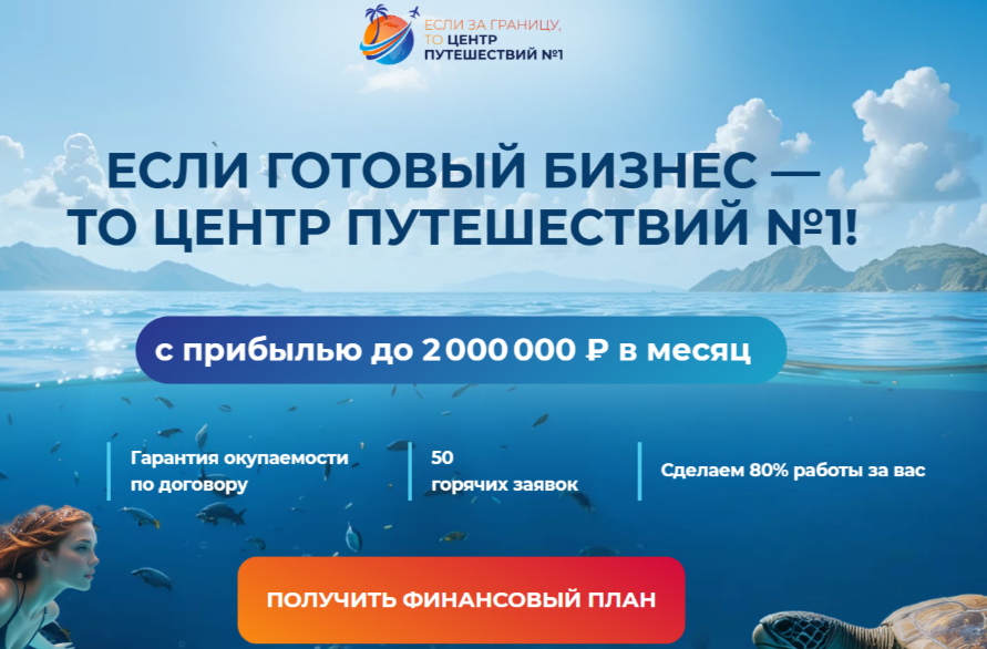 А франшиза «Центр Путешествий №1» позволяет не только продавать туры, но и предлагать клиентам полный комплекс услуг: от оформления виз и страховок до помощи с выбором идеального места для отдыха с детьми.