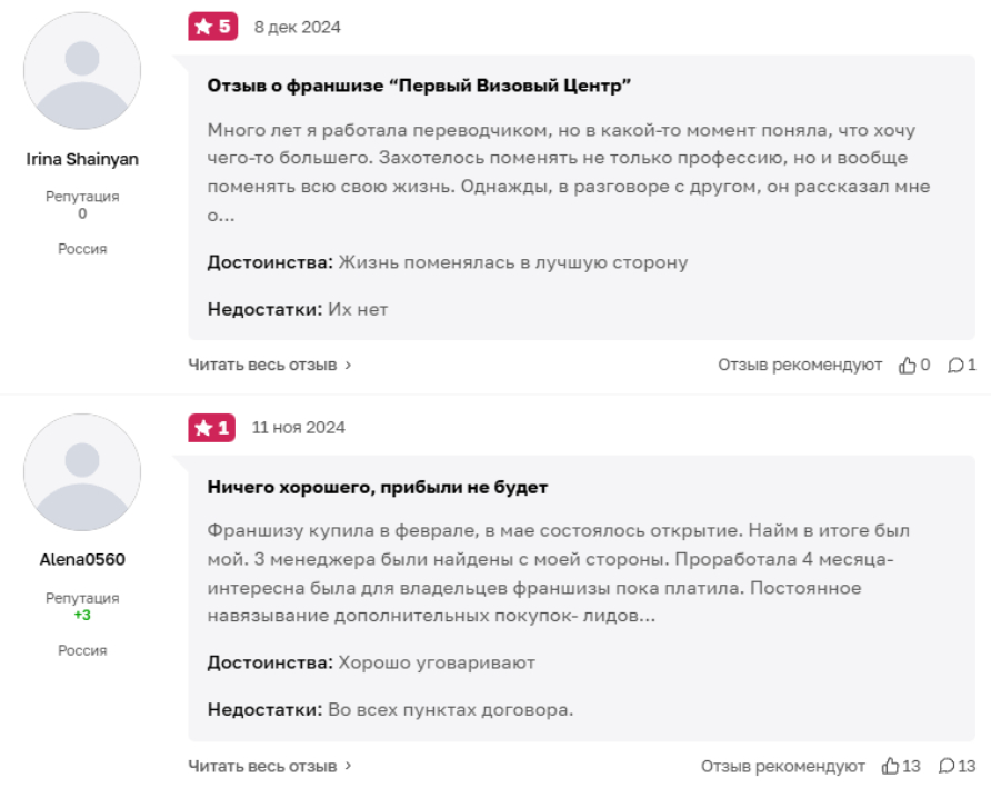 Отзывы франчайзи: отсутствуют. В открытых источниках нет отзывов от франчайзи, что вызывает опасения. Блог рекомендует лично встретиться с основателем и партнерами перед покупкой. Информации о работе «Визового центра Европа» мало.