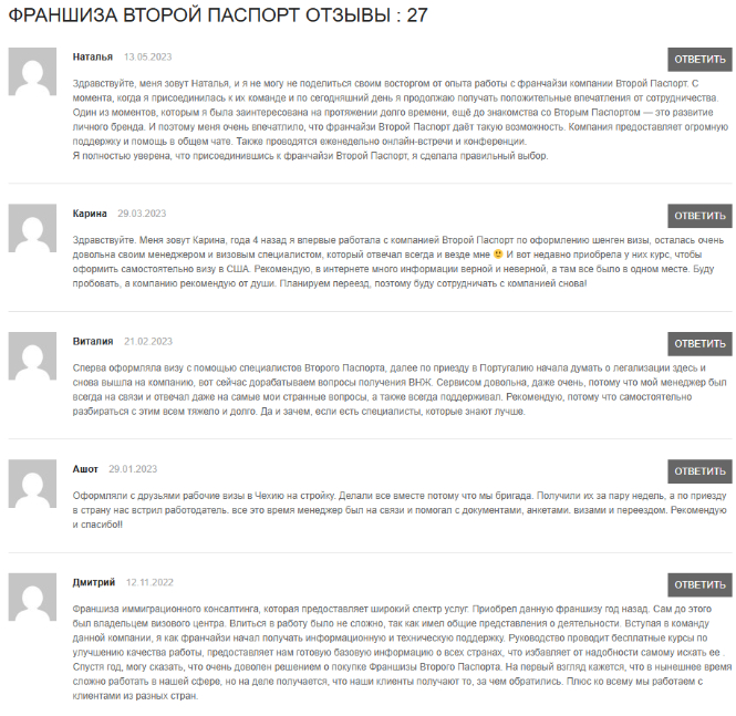 Репутация основателей: Юрий Моша, один из создателей, был арестован в 2021 году в США по делу компании «Русская Америка». Обвинения касаются его другой деятельности, а франчайзи «Второго Паспорта» отрицают связь сети с этим делом. В прессе нет негативных историй о бренде, но инвесторам стоит учесть этот факт.