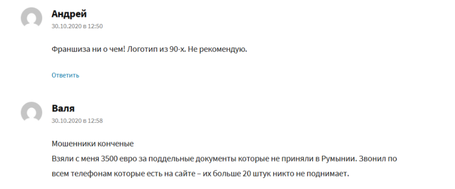 Отзывы франчайзи резко негативные, с сообщениями о мошенничестве. Франчайзи жалуются на поддельные документы и отсутствие ответа от фирмы.