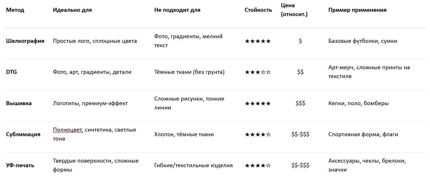 — Для чего: Базовые футболки, худи, сумки (логотипы, надписи).