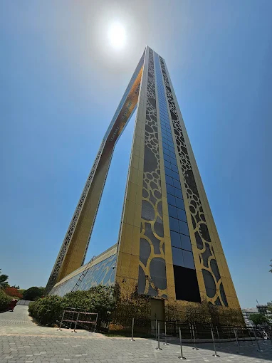 Вечером эта гигантская «рамка» из света и стекла оживает особенно эффектно. Снаружи — фасад с подсветкой и светодиодными анимациями, внутри — стеклянный мост и экспозиции о прошлом и будущем Дубая. Отличное место для фото и неспешной прогулки.