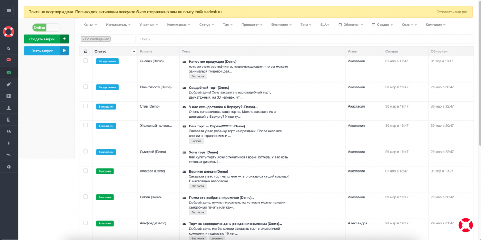 В Юздеске обращения из всех каналов попадают в единое окно «Запросы». Клиент может начать диалог в чате на сайте, а потом попросить прислать ему на почту презентацию с подробностями по продукту. У оператора уйдет меньше минуты на то, чтобы добавить новый способ связи в карточку и из той же вкладки отправить письмо. Дублей в запросах — значительно меньше, а коммуникация — проще.