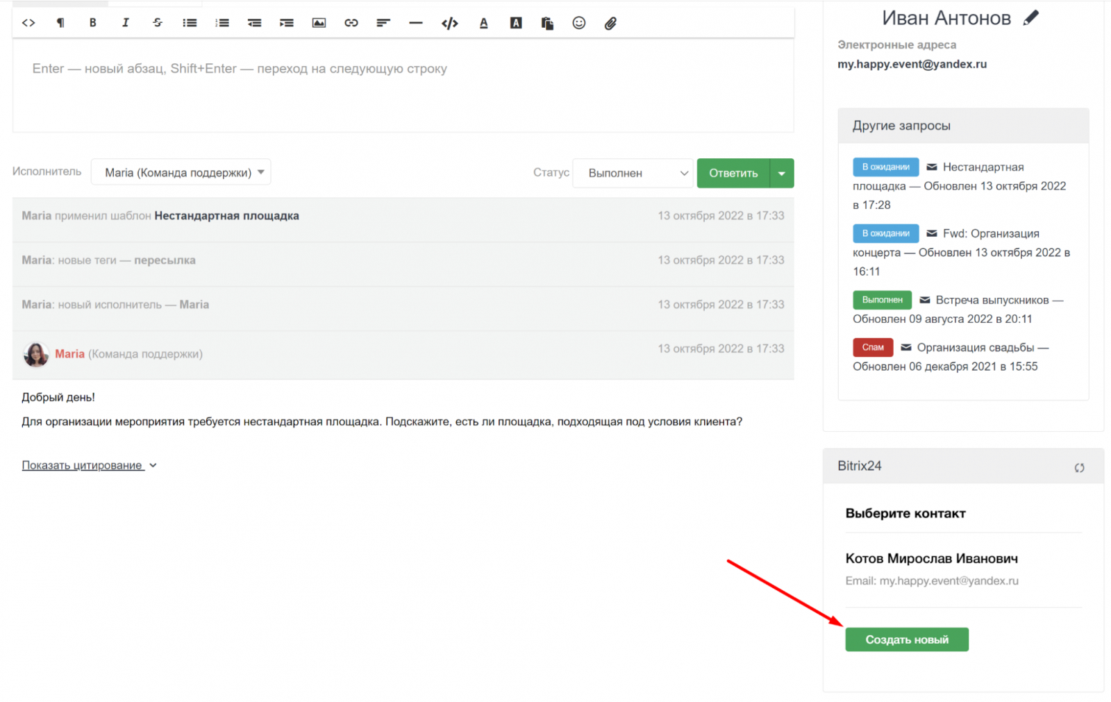 В системе удобно анализировать обращения — по темам, статусам, скорости реакции. Это позволяет руководителю понимать, как лучше распределить нагрузку и какие процессы стоит доработать.