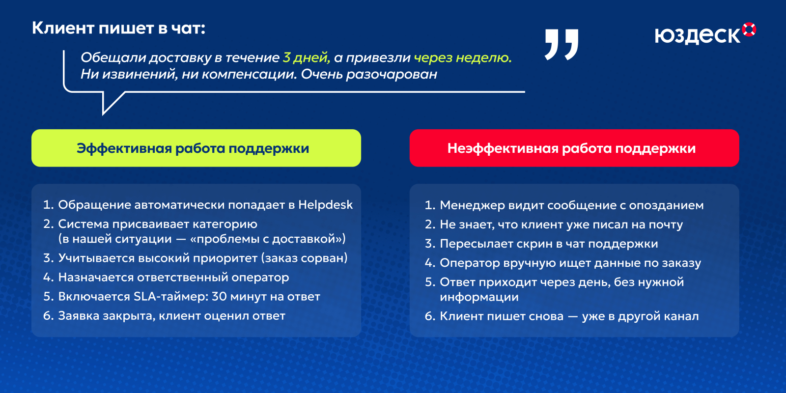 Когда заявок много, ручное управление — не вариант. Чтобы команда не утопала в рутине, нужна система, которая помогает все держать под контролем. Вот как работает грамотная автоматизация на примере Юздеск: