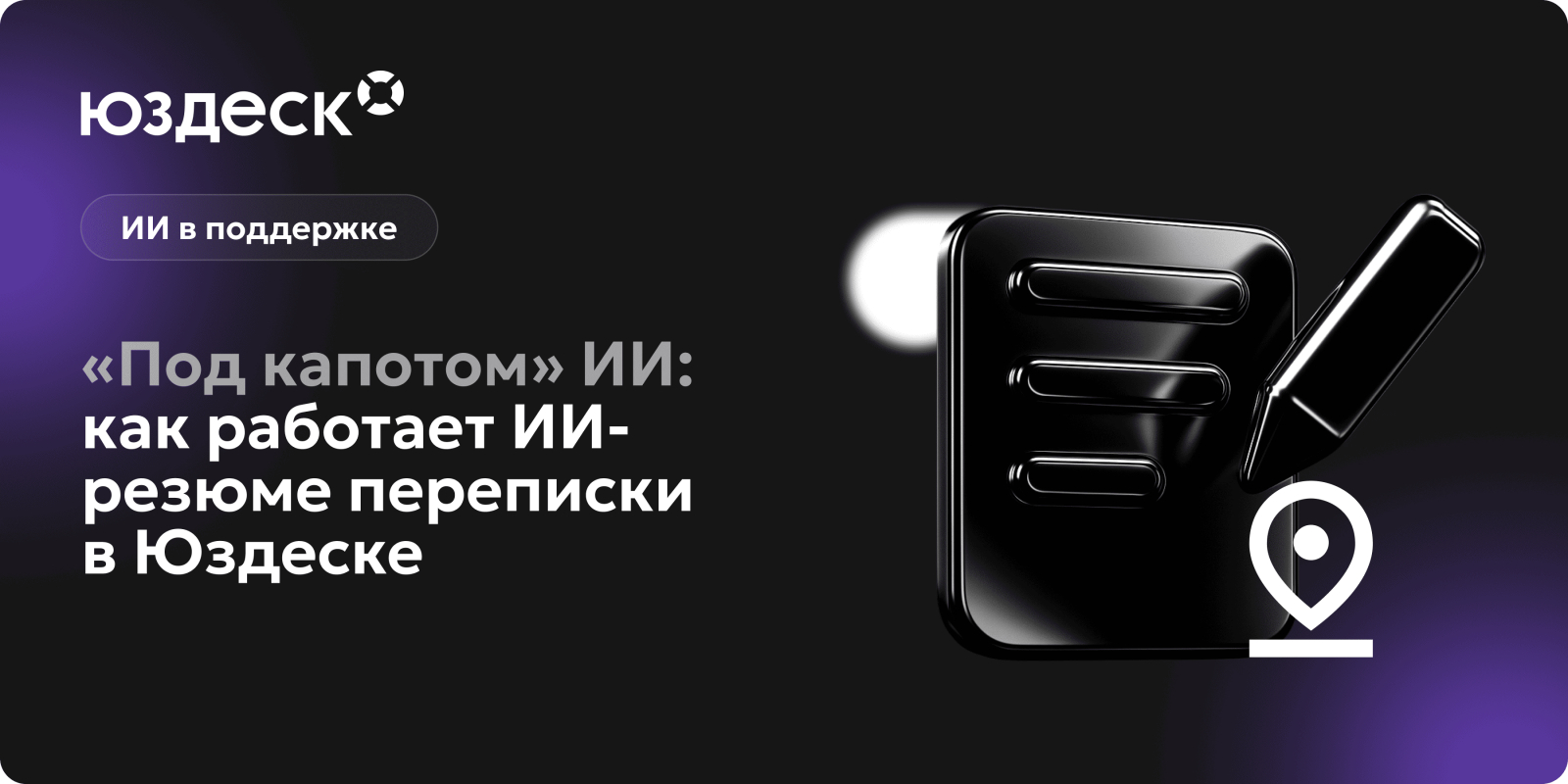 ИИ-резюме переписки доступно только на тарифе «Эксперт + ИИ». Если вы клиент Юздеска, для подключения ИИ к аккаунту достаточно написать в поддержку. Если вы всё еще не используете Юздеск — оставьте заявку на демо с экспертом.