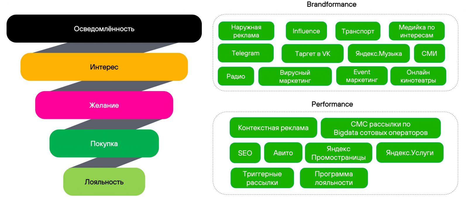 Специалистам VBI предстояло совместно с командой на стороне заказчика запустить в синергии медийные каналы. При этом наша работа касалась больше performance-инструментов.