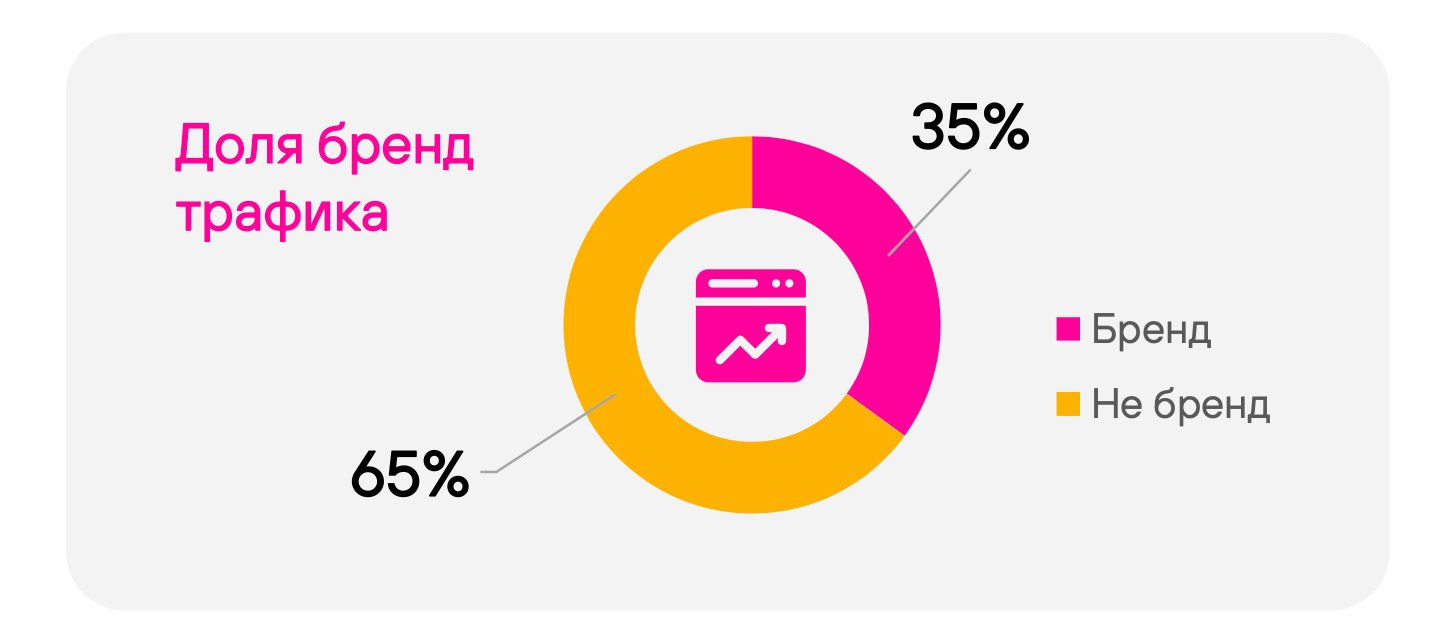 На старте, в июле-августе 2022 года распределение доли обращений по брендовым и небрендовым запросам выглядело следующим образом: