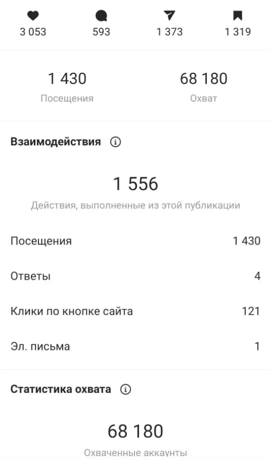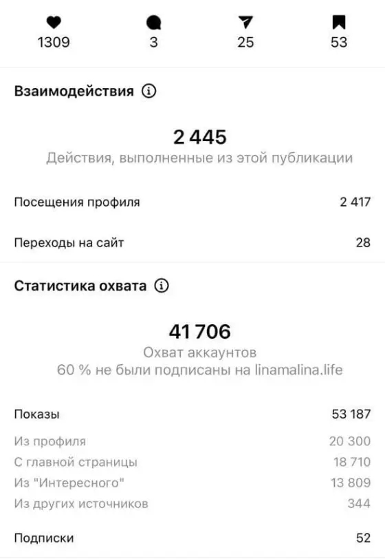 Мы пригласили к сотрудничеству несколько десятков блогеров, которые ведут аккаунты в разных тематиках, затем решили сделать упор на охваты и вовлеченность — и это сработало. Но когда рекламная кампания закончилась, подписчиков все равно было недостаточно: только 3000 из 9000. Зато банк получил потрясающий виральный эффект, рост органики и огромное количество сохранений постов блогеров. Публикации охватывали по 40–65 тысяч пользователей Instagram*, и каждую из них сохраняли по 50–120 раз.
