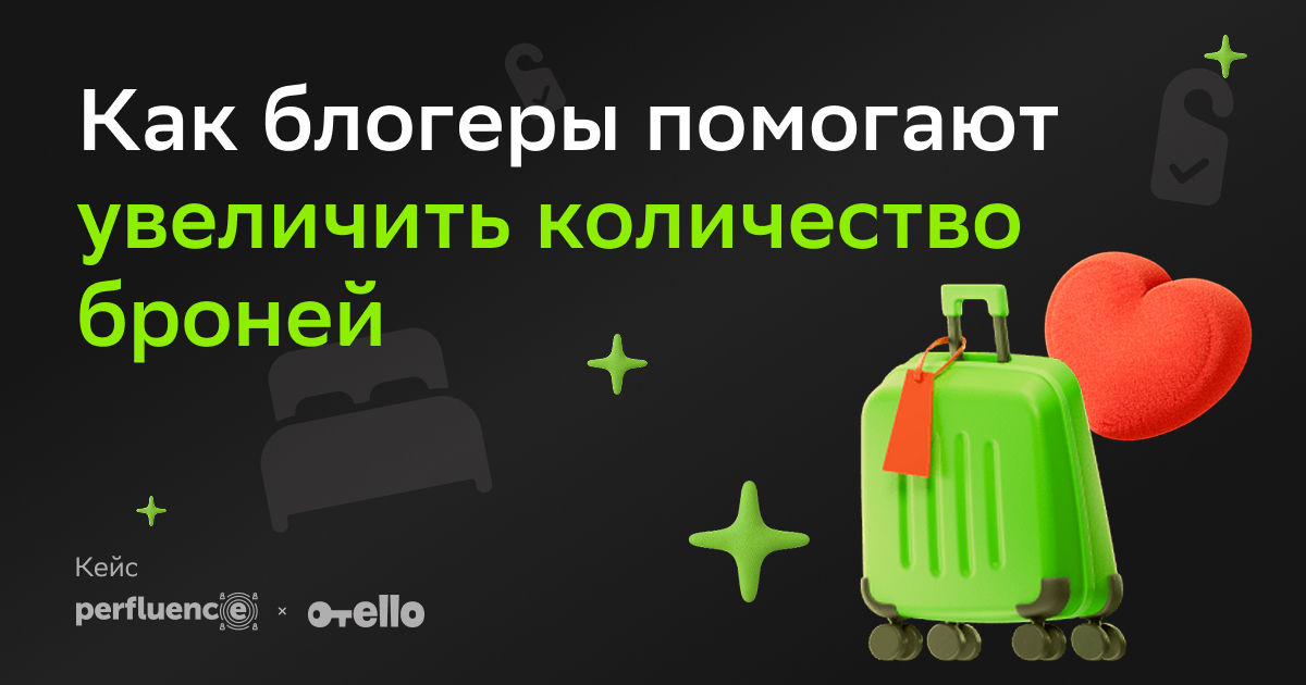 Сервис бронирования «Отелло» регулярно работает с блогерами через платформу Perfluence. Для компаний с высоким уровнем конкуренции и долгим циклом принятия решений работа с инфлюенсерами — эффективный инструмент привлечения новых клиентов в сервис, а также повышения узнаваемости и укрепления доверия, поскольку люди больше верят личным рекомендациям инфлюенсеров, за которыми они наблюдают каждый день, чем стандартной рекламе.