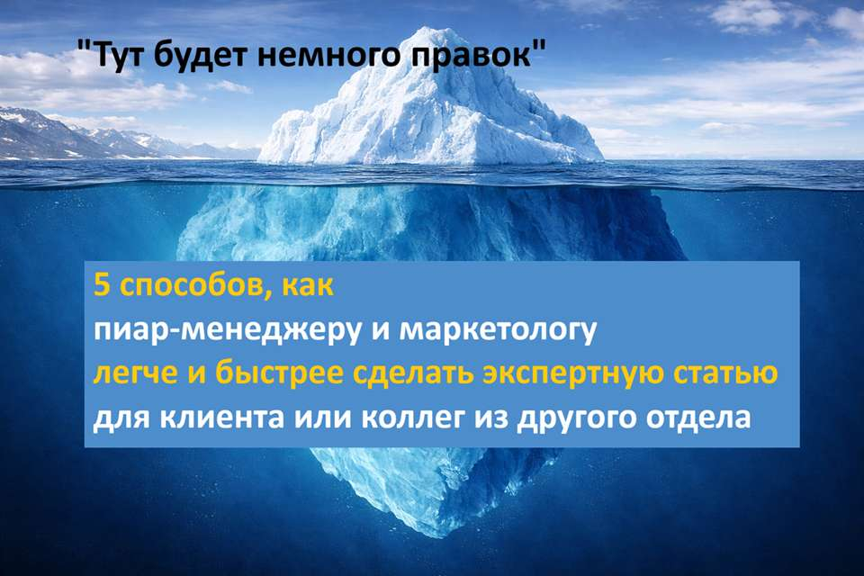 Разумеется, если ваш заказчик или коллега отвечает за статью, то имеет право требовать: «Текст должен быть сделан так, как считаю правильным я». Маркетологу и пиар-менеджеру не нужно спорить с этим, но никто не запрещал вести конструктивный диалог и искать решения, которые могут облегчить работу команды (включая самого эксперта).