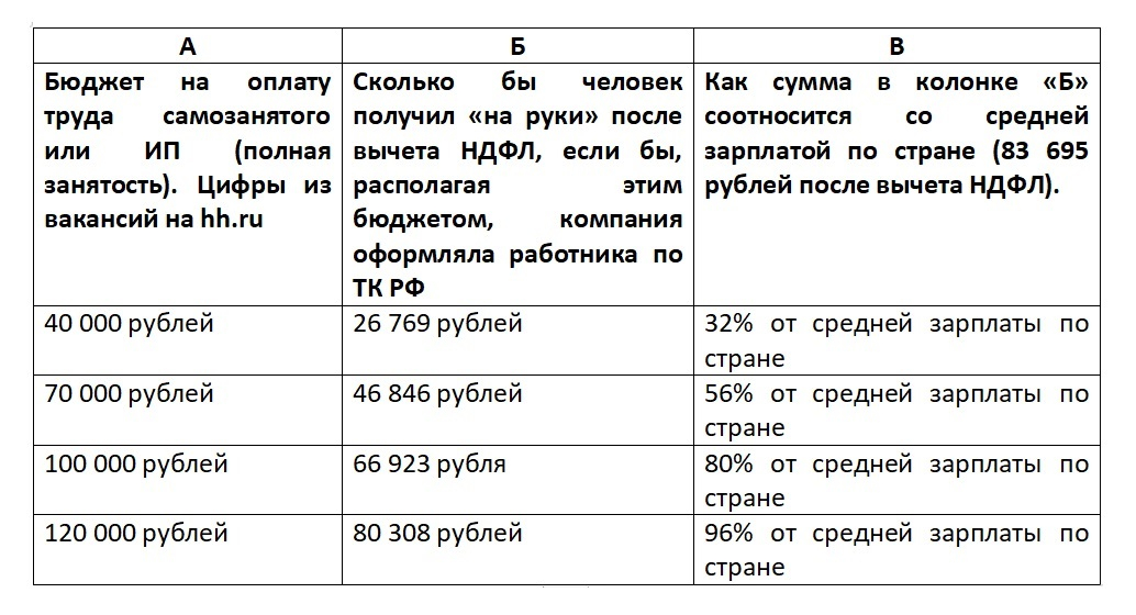 60 231 — это 72% средней зарплаты по стране. Очевидно, что такие деньги не дают компании экономического аргумента требовать от исполнителя одновременно и высокой квалификации, и труда на полную занятость.
