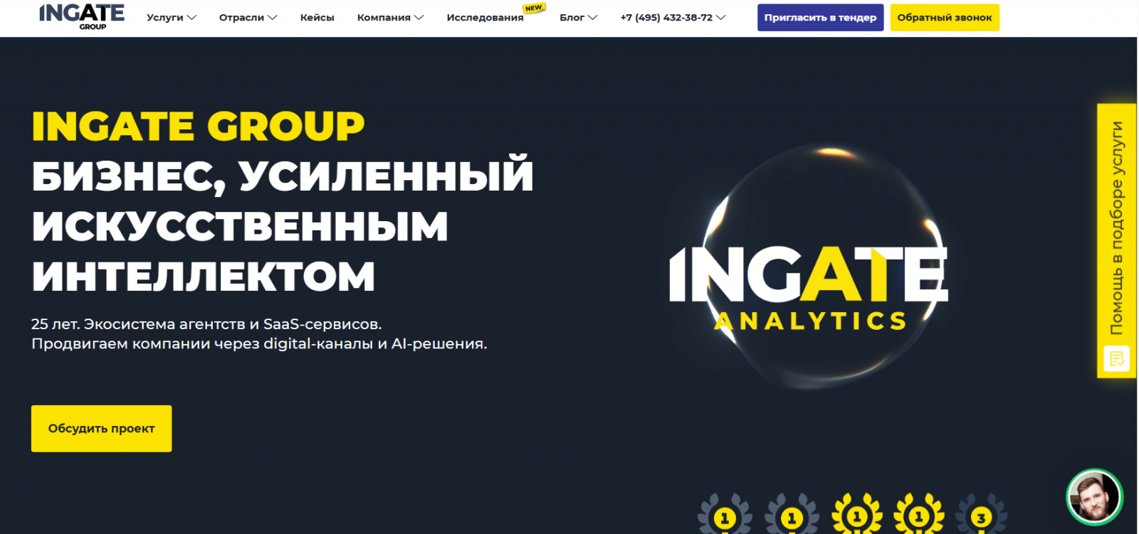 INGATE - одно из наиболее авторитетных digital-агентств России. Обладает уникальным опытом в международном маркетинге, включая продвижение брендов в США, Европе и Азии. Основная экспертиза сосредоточена в области SEO и контент-маркетинга, что позволяет добиваться стабильного роста органического трафика.