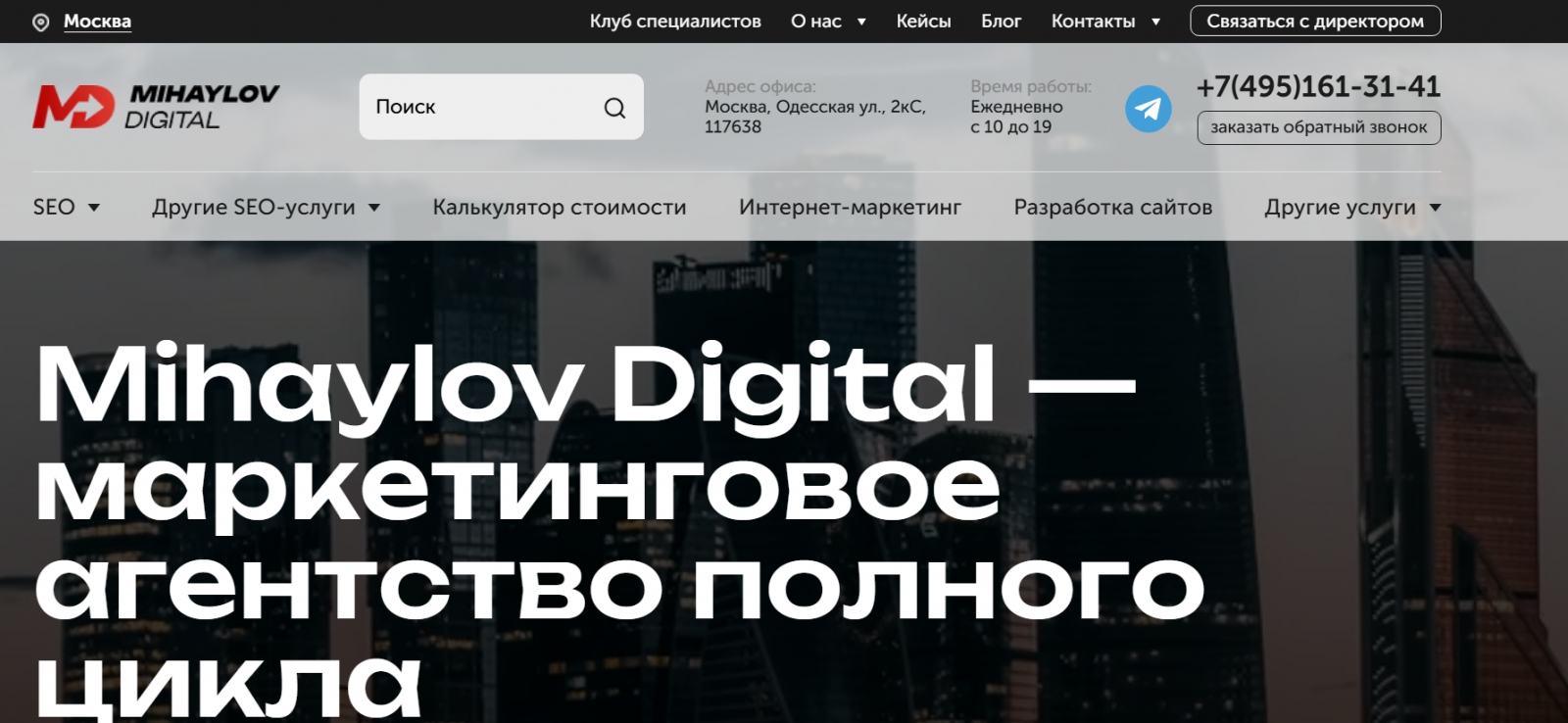 Mihaylov.Digital - это агентство выделяется узкой специализацией на контекстной рекламе в Яндекс.Директ и Google Ads. Их команда обладает глубокой экспертизой в сложных нишах, таких как медицина, юридические услуги и недвижимость. Основное преимущество — подход, основанный на глубокой аналитике и постоянном A/B-тестировании рекламных креативов. Они настраивают сквозную аналитику, позволяющую отслеживать весь путь клиента от первого касания с рекламой до совершения покупки.