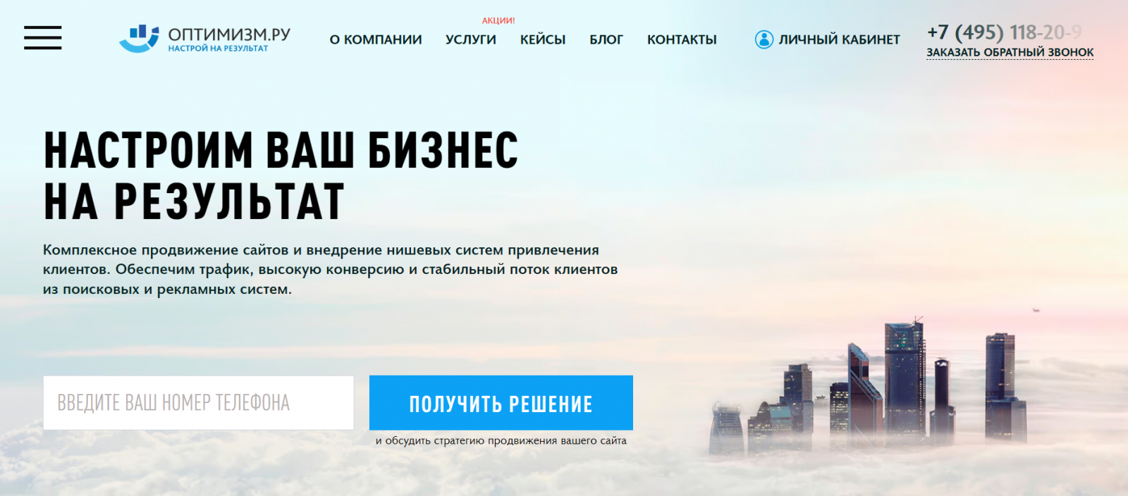 Optimism - агентство полного цикла, предлагающее комплексные решения от рекламы до автоматизации CRM-процессов. Их ключевое отличие — объединение всех маркетинговых инструментов (SEO, контекстная реклама, таргетированная реклама, email-маркетинг) в единую систему. Особое внимание уделяют технологиям и автоматизации, включая интеграции с CRM-системами и разработку чат-ботов. Имеют успешный опыт работы как с крупными B2B-компаниями, так и с e-commerce проектами.
