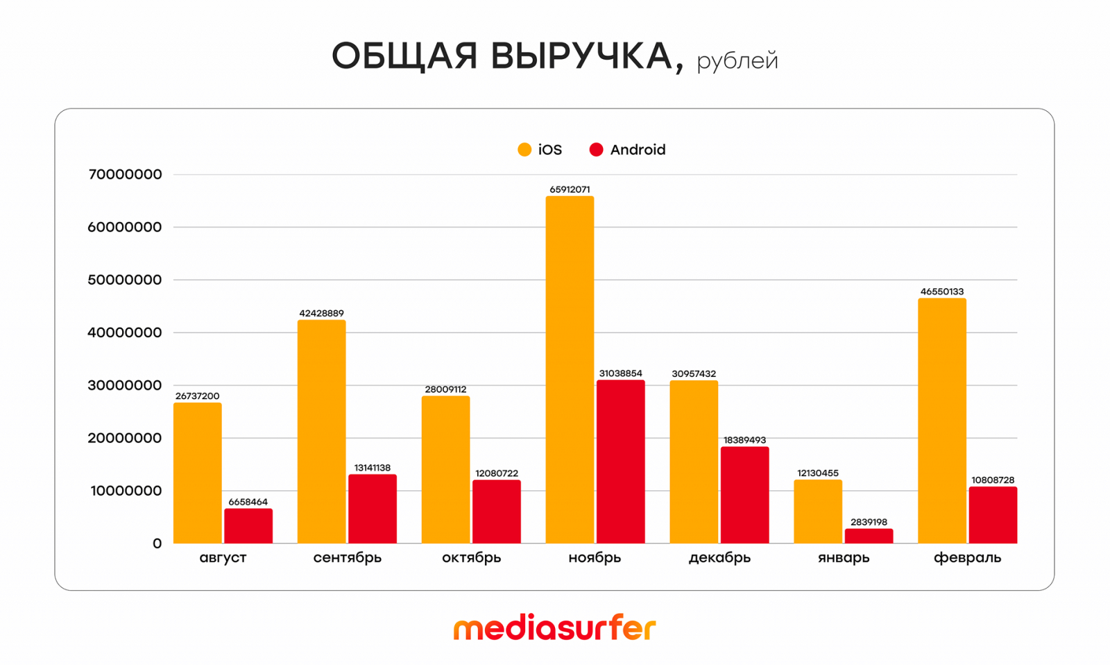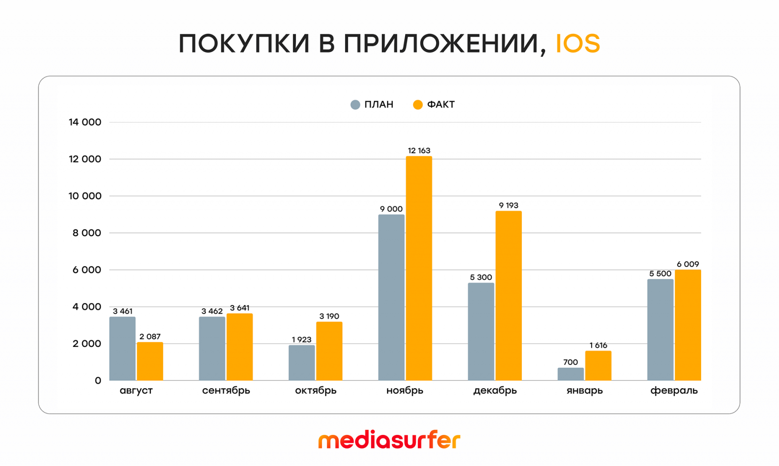 Эти корректировки быстро повлияли на результаты: уже через месяц выполнение плана на iOS составило 165% и продолжило расти, достигнув 230% в декабре.