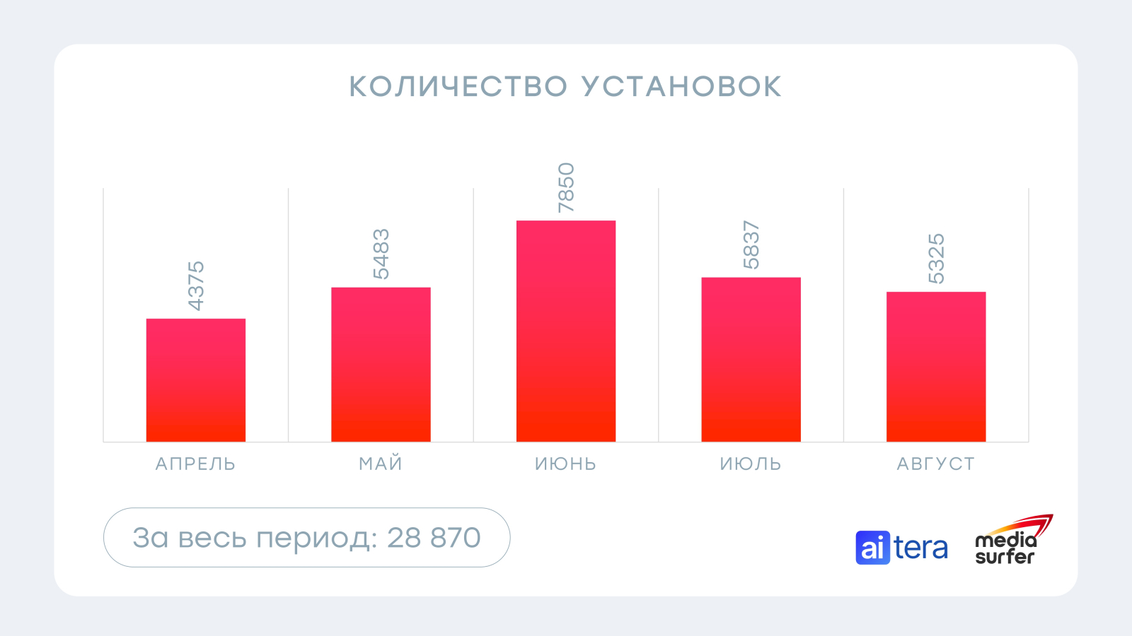 За 5 месяцев работы, благодаря User Acquisition, были достигнуты следующие результаты: