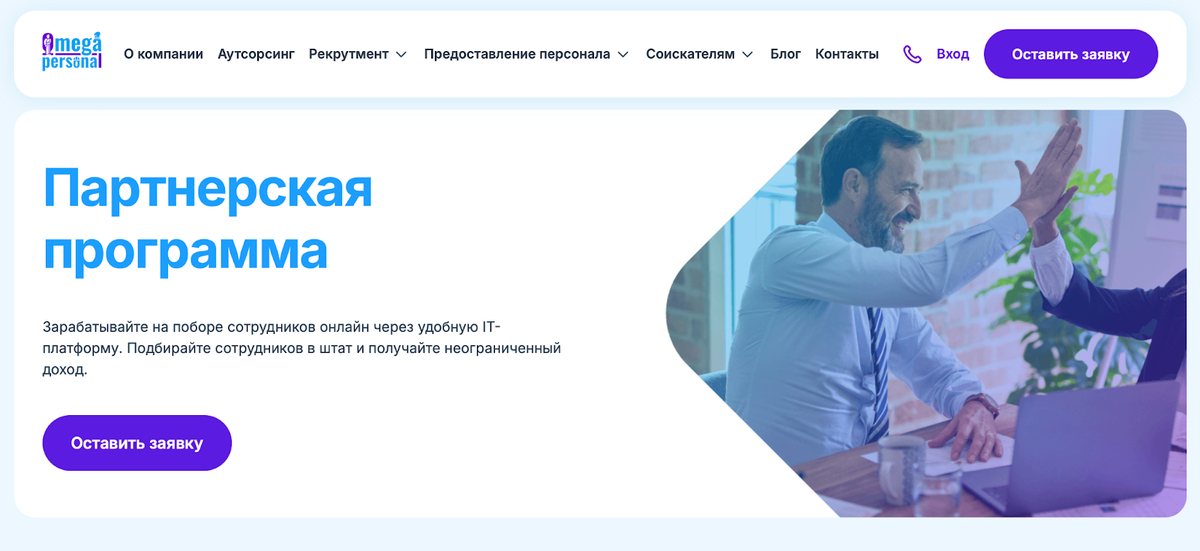 Партнерская программа — это по сути модель «рекрутинг по результату». Рекрутер получает доступ к базе вакансий, направляет подходящих кандидатов, а после успешного выхода на работу получает вознаграждение. Все взаимодействие происходит через онлайн-платформу: от регистрации до подтверждения выхода сотрудника.