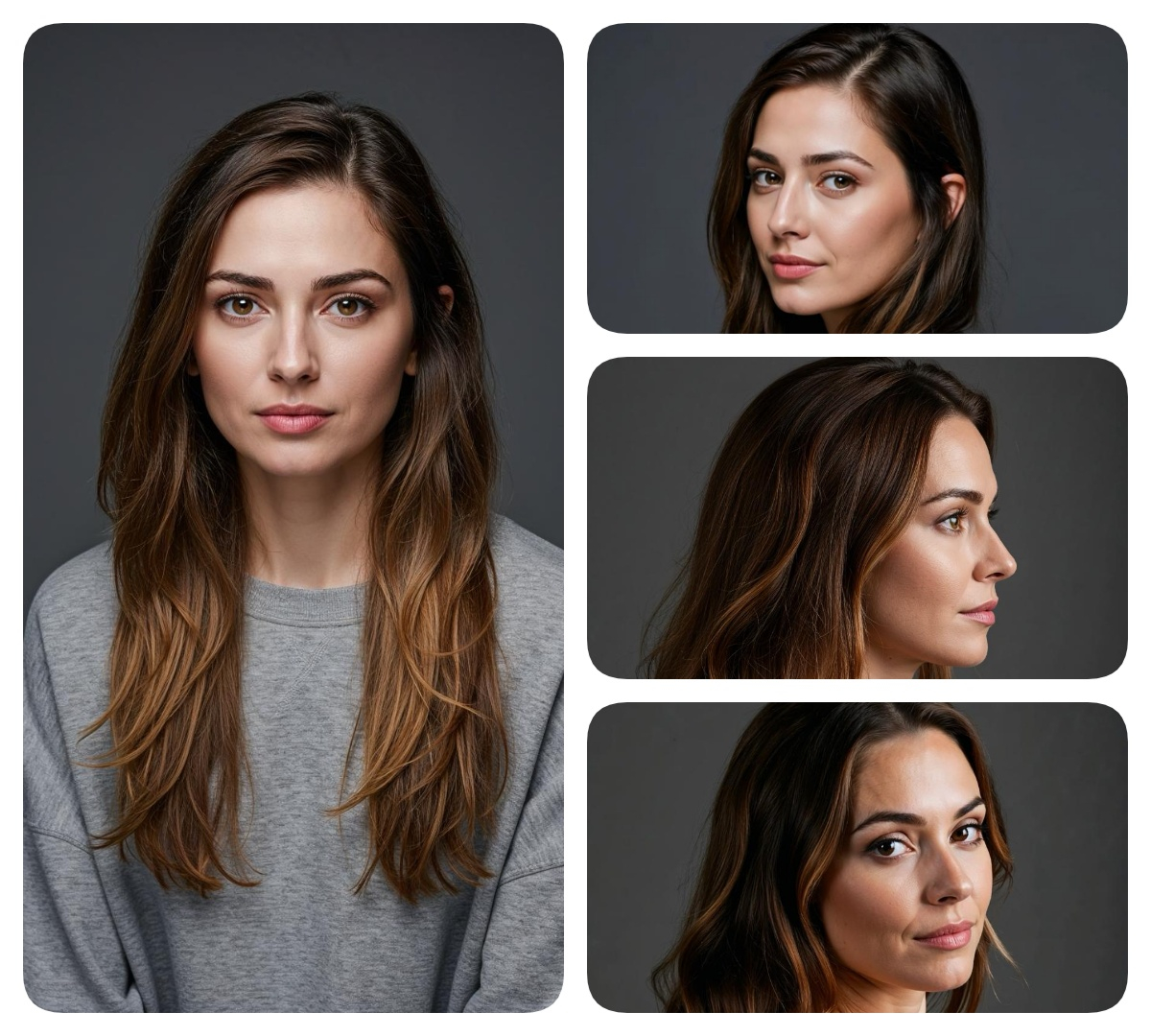 Чтобы получить одного и того же персонажа в разных ракурсах, мы обратились к видео-генератору PixVerse. Исходя из одного «базового» изображения, он оживил фотографию и сгенерировал новые кадры под разными углами. После этого у модели появились «маяки» по которым она выстраивала одинаковый портрет героини в разных ракурсах, сохраняя при этом ключевые детали — от контура лица до набора эмоций.