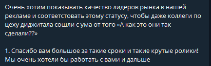 Ребята из «Ясно» тоже остались довольны, и уже запустили наш ролик в ротацию онлайн-кинотеатров и стриминговых сервисов.