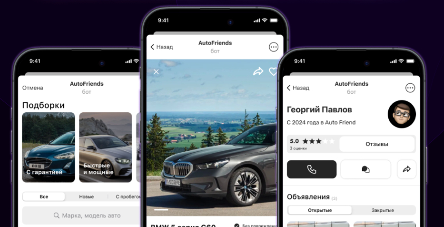 Одно из решений, реализованное на базе Telegram Mini App, — сервис по продаже автомобилей в Санкт-Петербурге. Цель проекта: упростить процесс покупки и продажи авто до нескольких кликов.