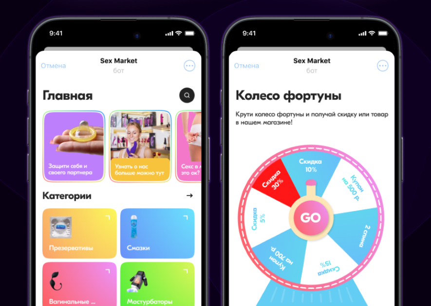 Еще один пример — мини-приложение для интернет-магазина интимных товаров. Здесь основной акцент был сделан на конфиденциальность, геймификацию и автоматизацию. Telegram Mini App интегрирован с 1С, что позволило синхронизировать остатки, передавать заказы в бухгалтерию и логистику, автоматически обновлять каталог.