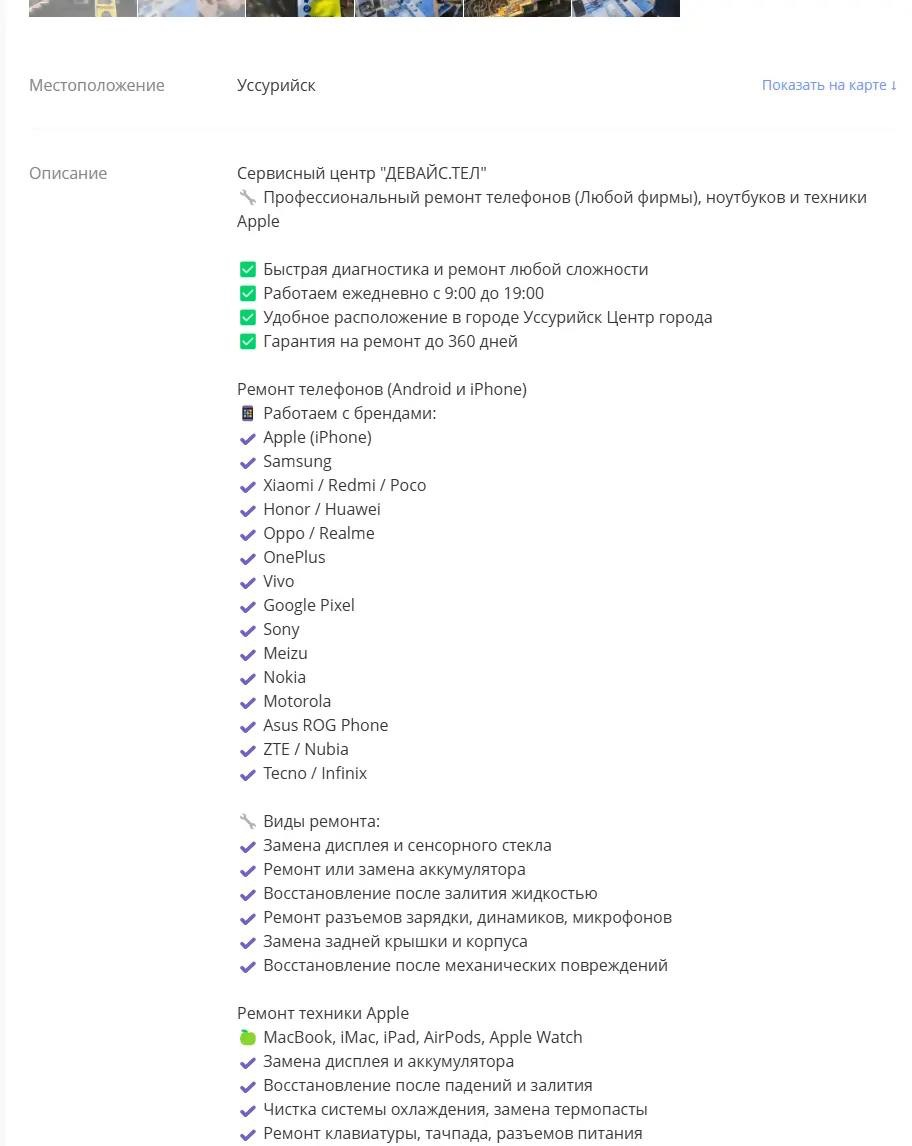 - Упаковать услугу так, чтобы выделяться в топе Авито и на картах.