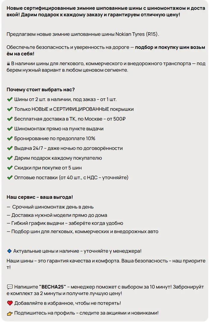 Сеть шинных магазинов с базой в Москве и регионах. Большой ассортимент, адекватные цены, но заявок нет.
