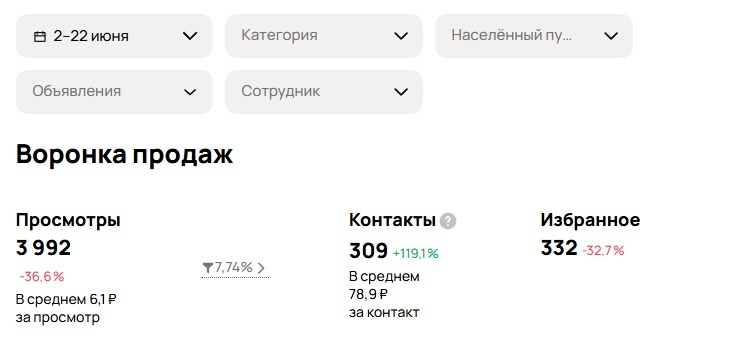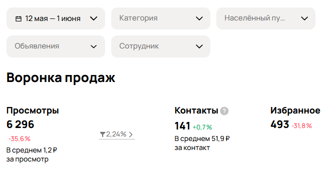 - Объявления: в МСК стабильно на 30 месте, без просмотров