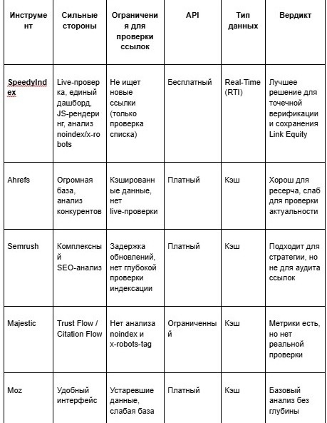 Это делает его не просто альтернативой, а специализированным инструментом под конкретную задачу — аудит ссылок.