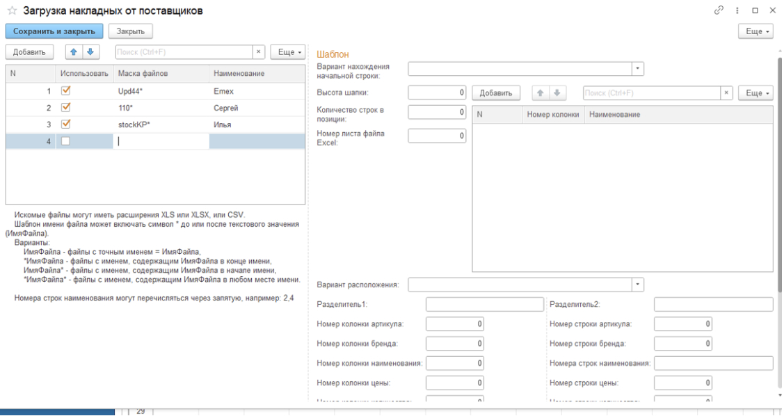 По названию файла модуль подбирает подходящий шаблон, который можно заранее настроить под конкретного поставщика. Это избавляет от необходимости каждый раз вручную настраивать параметры.