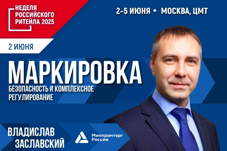 Модерирует сессию Владислав Заславский, директор Департамента цифровой маркировки товаров и легализации оборота продукции Министерства промышленности и торговли Российской Федерации