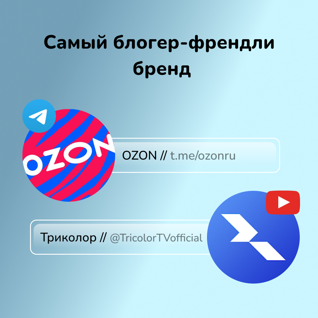 - Ozon (Telegram) Компания системно работает с блогерами — от микро до макроуровня. Прозрачный процесс, гибкость, разнообразие форматов и частые повторные коллаборации делают Ozon примером качественного взаимодействия с инфлюенсерами.
