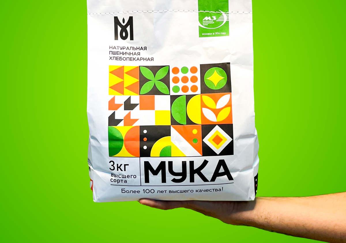 2. Упаковка для муки Энгельсского мукомольного завода. Упаковка муки была разработана с глубочайшим уважением к традициям и философии качества, которые сопровождают производство этого важного продукта на протяжении веков. Дизайн отражает историю и наследие мукомольного дела, при этом акцентируя внимание на современности и высоких технологиях, которые используются в производстве. Каждый элемент упаковки вдохновлён натуральностью и свежестью продукта. Через графику и цветовые решения передан характер первозданной природы, из которой получаются зерна. Упаковка включает в себя изображения полей, колосков пшена и зёрен.