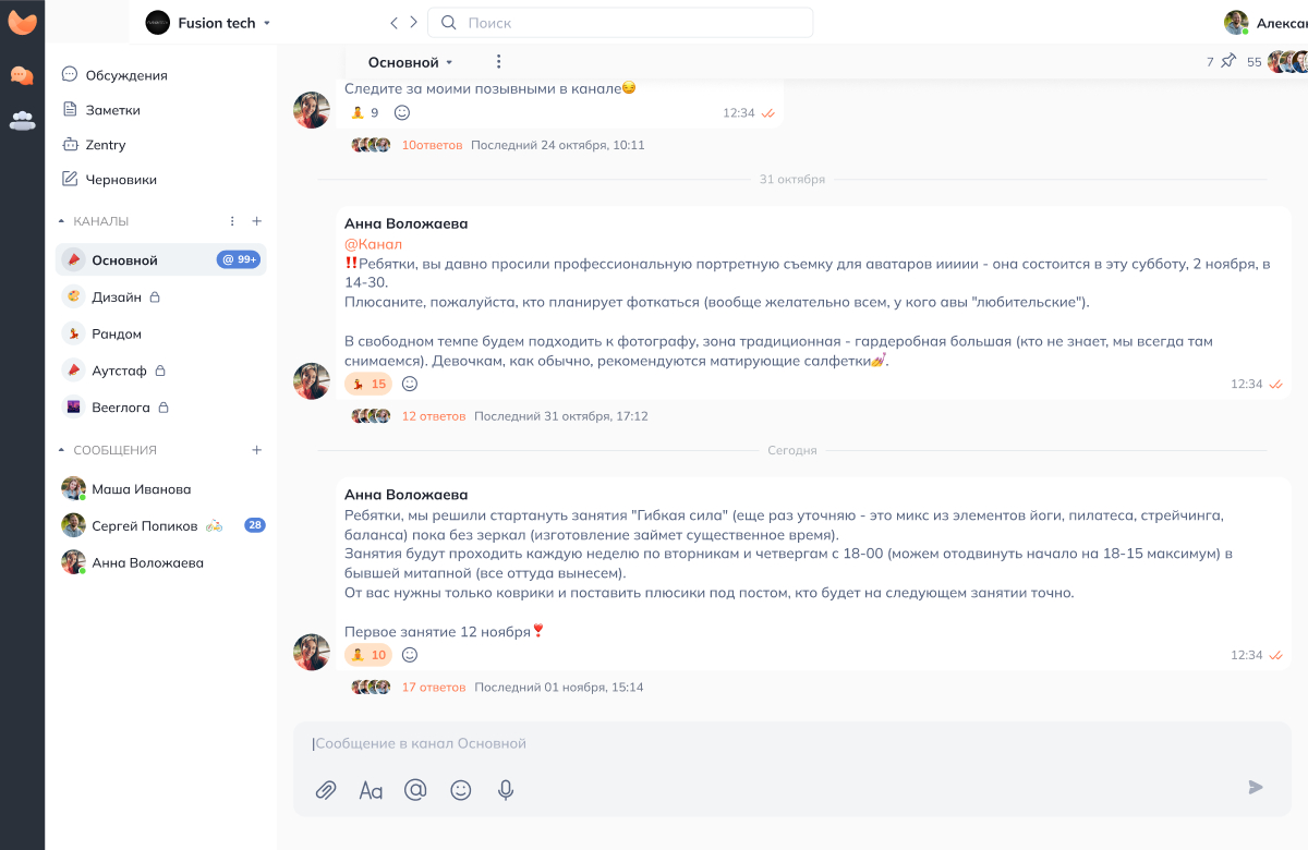 Как известно, все самые масштабные проекты рождаются с фразы “а давайте”. Когда на одном из совещаний мы, командой топ-менеджеров, рассуждали на тему мотивации сотрудников и их “большой” миссии внутри компании, помимо воплощения идей клиентов, нам в головы пришла мысль объединить их усилия продуктом, так, чтобы каждый смог поучаствовать в его разработке и оставить свой след и в то же время оптимизировать нашу рутину. А что если разработать HRM-систему с конструктором заявок, возможностью ведения личных карточек сотрудников, реестра техники, учета рабочего времени, составления карьерных треков и еще много чего важного с точки зрения HR и бизнес-процессов? Внутренний продукт, который нужен прежде всего нам самим. Так началась история ZentrySpace, которая в момент перелома рынка зарубежного софта, получила мощный толчок к ускорению и новую цель - импортозамещение, разработку корпоративного мессенджера-аналога Slack.