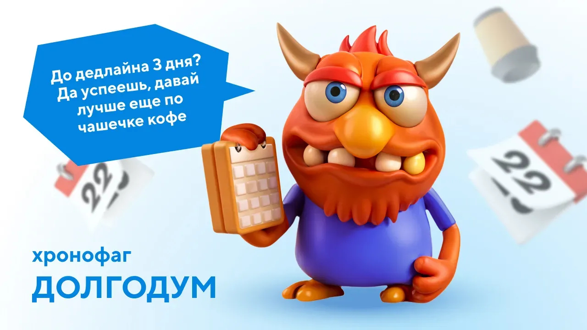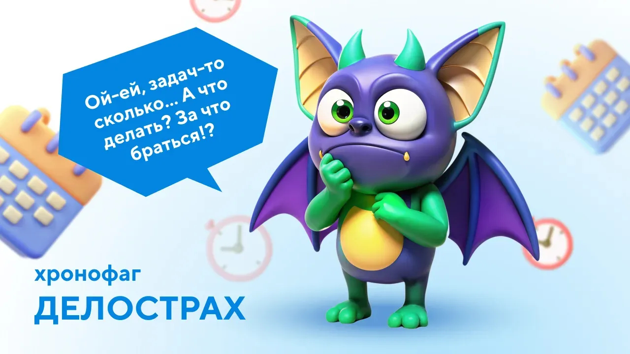 Любит путаницу и неопределённость. Он шепчет исполнителю: «Начни с простого! Или вообще не начинай». А пока сотрудник ждёт, пока начальник уточнит ему, что в проекте важнее, хронофаг Делострах превращает все задачи в хаос.