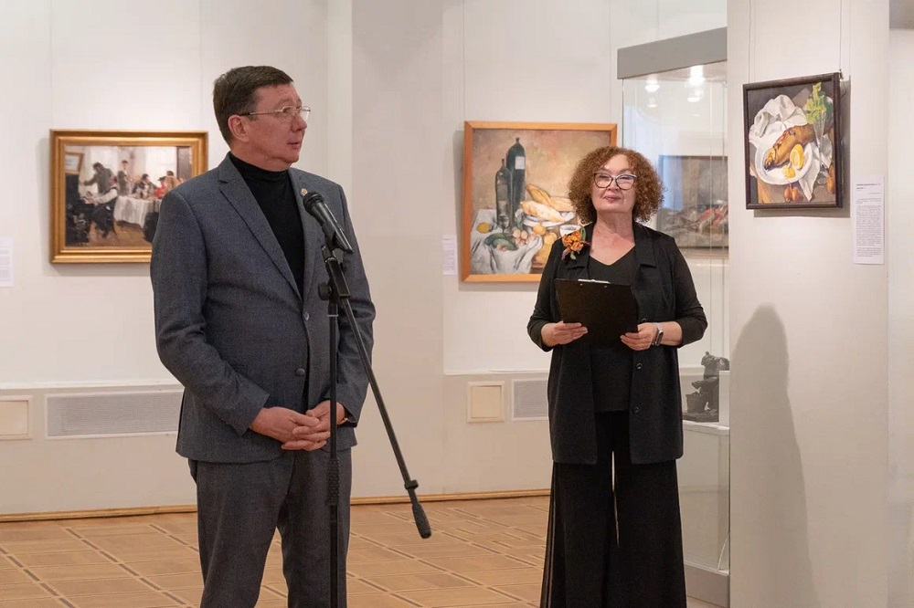 Заместитель генерального директора Русского музея по учёту, хранению и реставрации музейных предметов Сергей Владимирович Сирро: "Для Русского музея открытие новой выставки - не менее важное событие, чем для Республики Марий Эл. Почему мы выбрали для выставки тему обеда и натюрморта? Стол — это всегда то, что объединяет, позволяет посмотреть друг другу в глаза, о чем-то поговорить, обсудить насущные темы. Если это деловые переговоры, то они лучше проходят за обеденным столом, чем за чиновничьим. Мы привезли сюда произведения, которые знаменуют собой XIX век, ту эпоху, когда натюрморт стал достаточно важен и заметен в русской живописи.