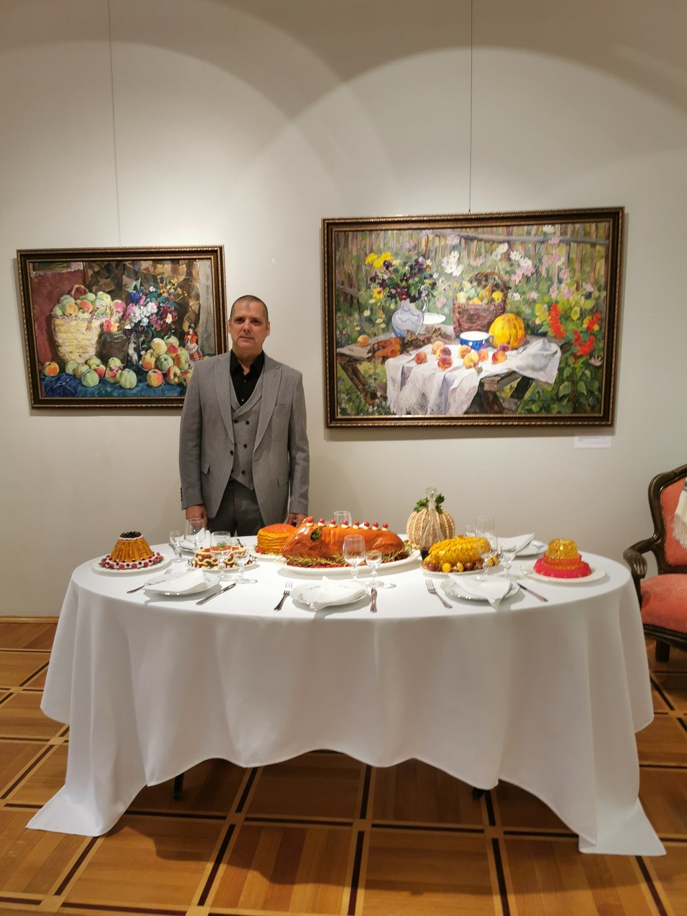 В Национальной художественной галерее состоялось открытие грандиозного выставочного проекта "Приглашение к обеду"! В экспозиции представлено 44 произведения из коллекции Русского музея, которые великолепного дополняют кулинарные композиции художника-кондитера Алдиса Бричевса, изготовленные им по старинным рецептам!