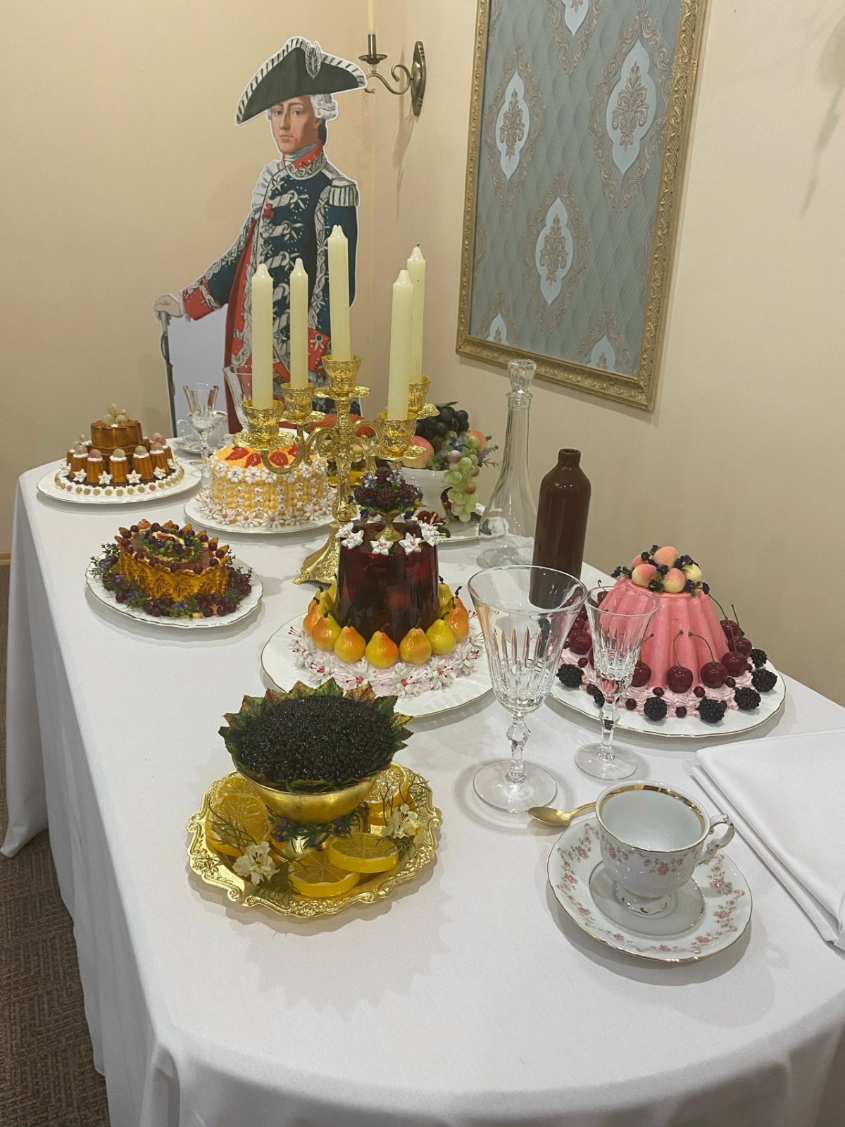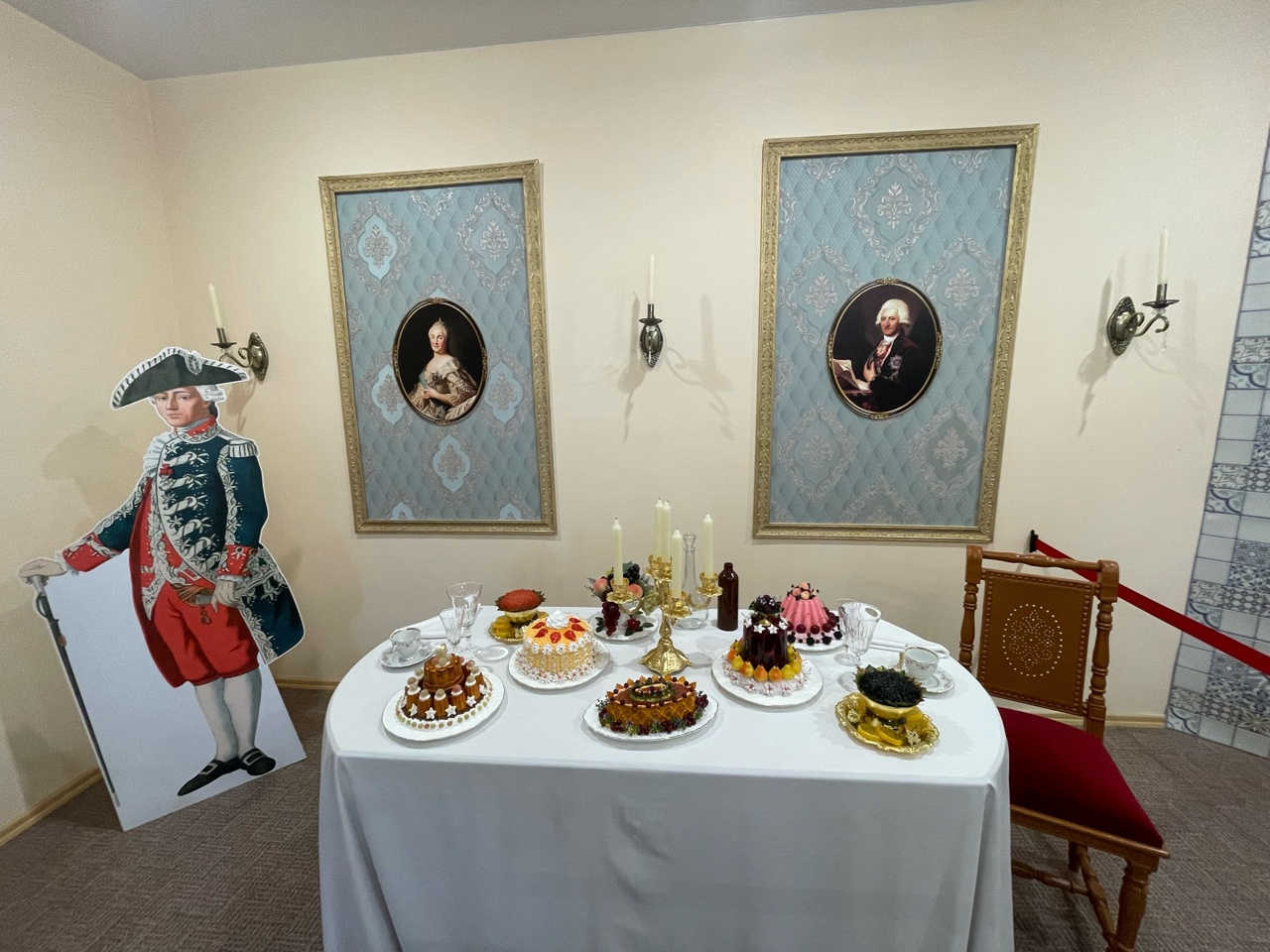 Именно трапезе императрицы и посвящена основная часть новой экспозиции. В центре – стол с искусно выполненными выставочными макетами любимых блюд ЕкатериныII. Все экспонаты - восстановленные блюда с соблюдением особенностей внешнего вида и воссозданны по старинным гравюрам.