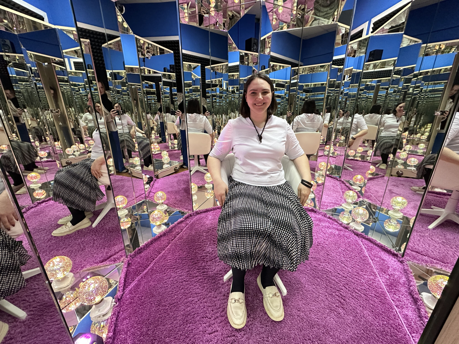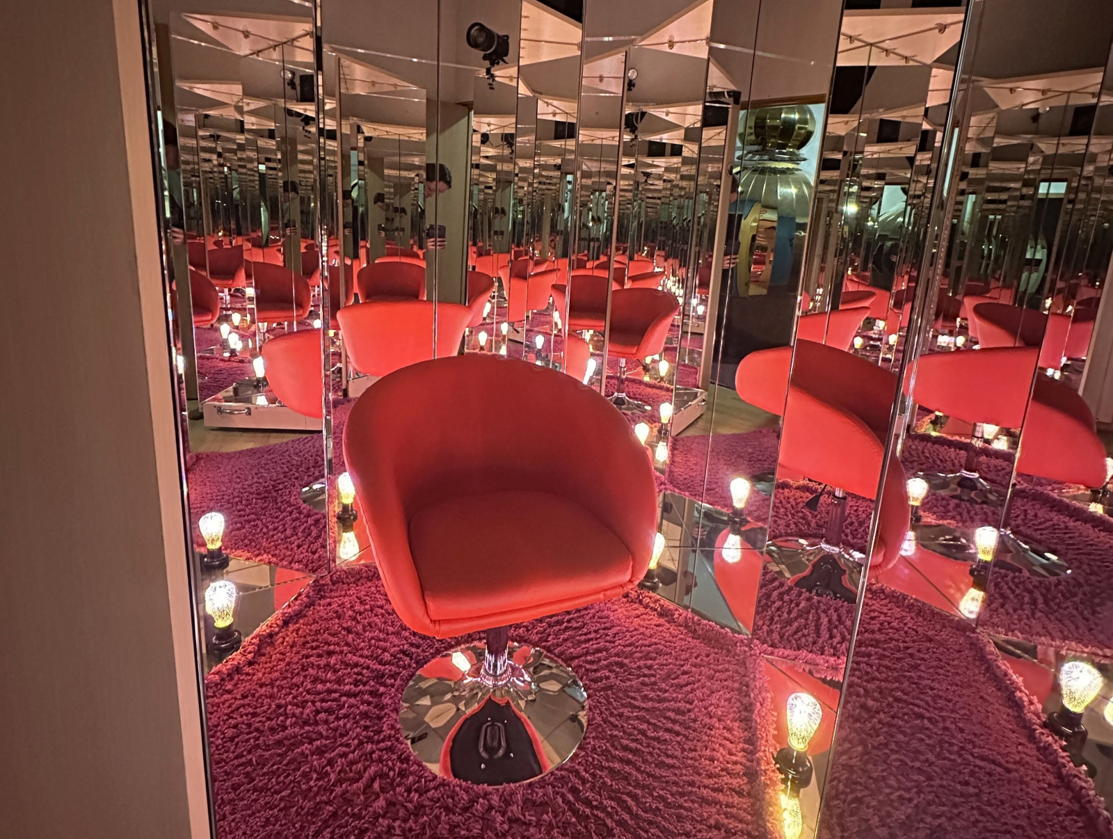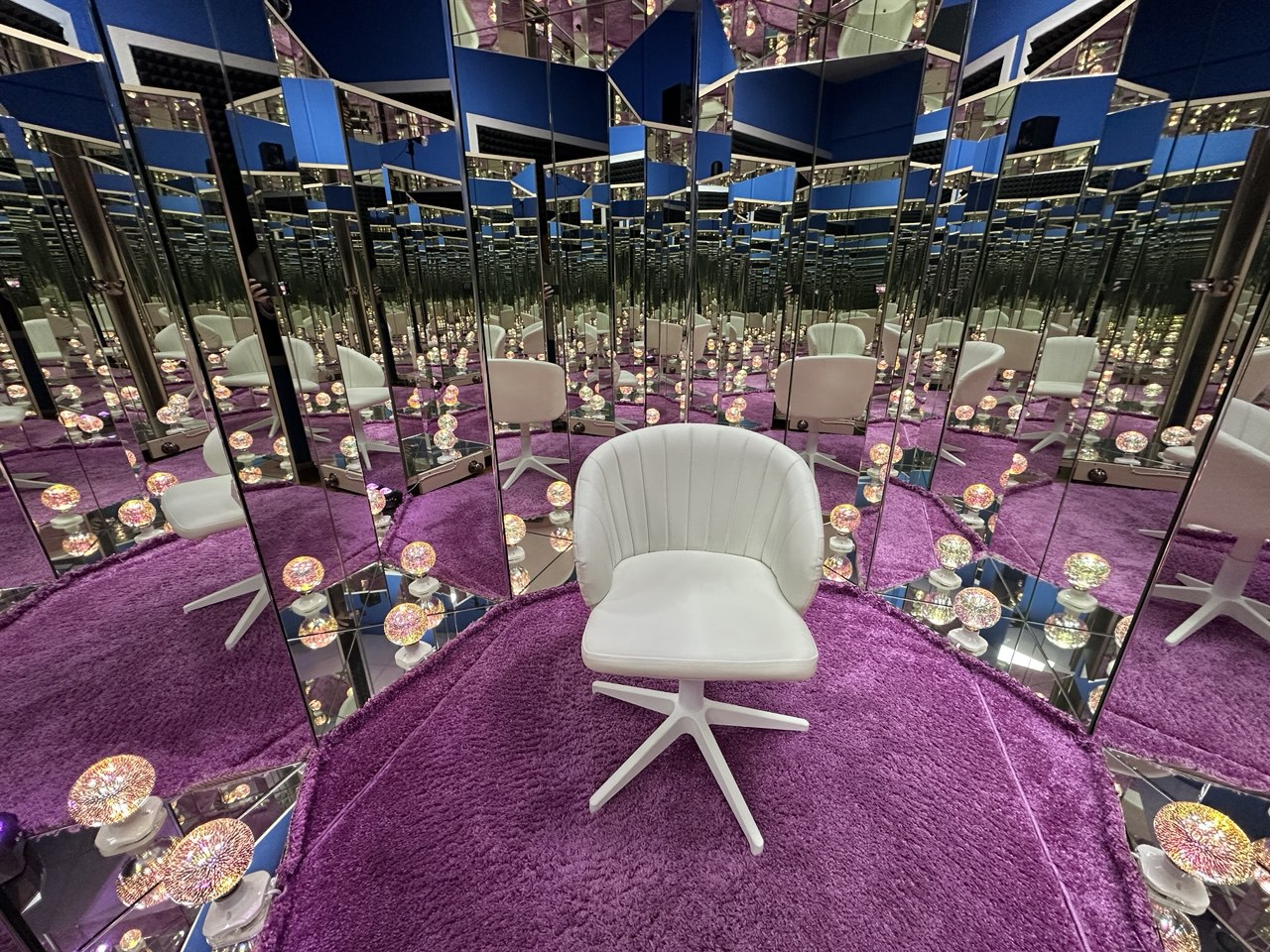 Многочисленные отражения, наблюдаемые в разных проекциях (спереди, сбоку, сзади) и расходящиеся в разные стороны, создают у человека реальные ощущение пребывания в открытом пространстве среди своих «двойников».