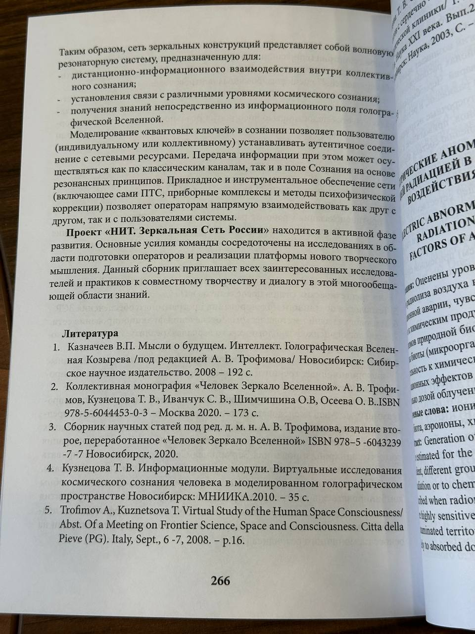 3. Сборник научных статей под ред. д. м. н. А. В. Трофимова, издание второе, переработанное «Человек Зеркало Вселенной» ISBN 978–5 -6043239 -7 -7 Новосибирск, 2020.