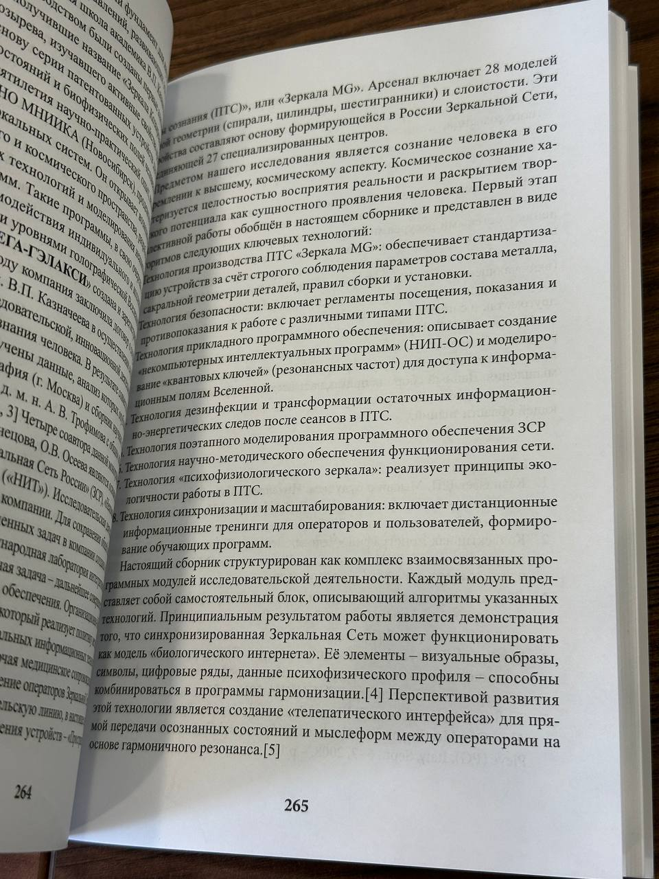 Настоящий сборник структурирован как комплекс взаимосвязанных программных модулей исследовательской деятельности. Каждый модуль представляет собой самостоятельный блок, описывающий алгоритмы указанных технологий. Принципиальным результатом работы является демонстрация того, что синхронизированная Зеркальная Сеть может функционировать как модель «биологического интернета». Её элементы — визуальные образы, символы, цифровые ряды, данные психофизического профиля — способны комбинироваться в программы гармонизации.[4] Перспективой развития этой технологии является создание «телепатического интерфейса» для прямой передачи осознанных состояний и мыслеформ между операторами на основе гармоничного резонанса.[5]